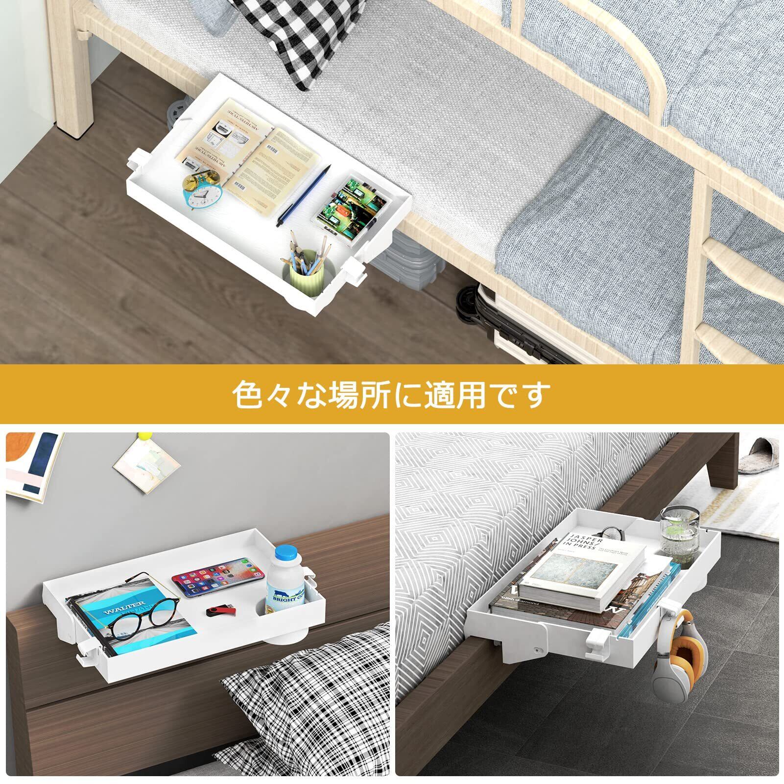 【使用範囲】さまざまなサイズのベッドに適しています。ベッドサイドにサイドテーブルとして使うだけでなく、特定のソファに合わせてサイドテーブルとしても使えます。自宅や寮、ホテルなどでの利用も可能で、利用范囲が広くてお得です。