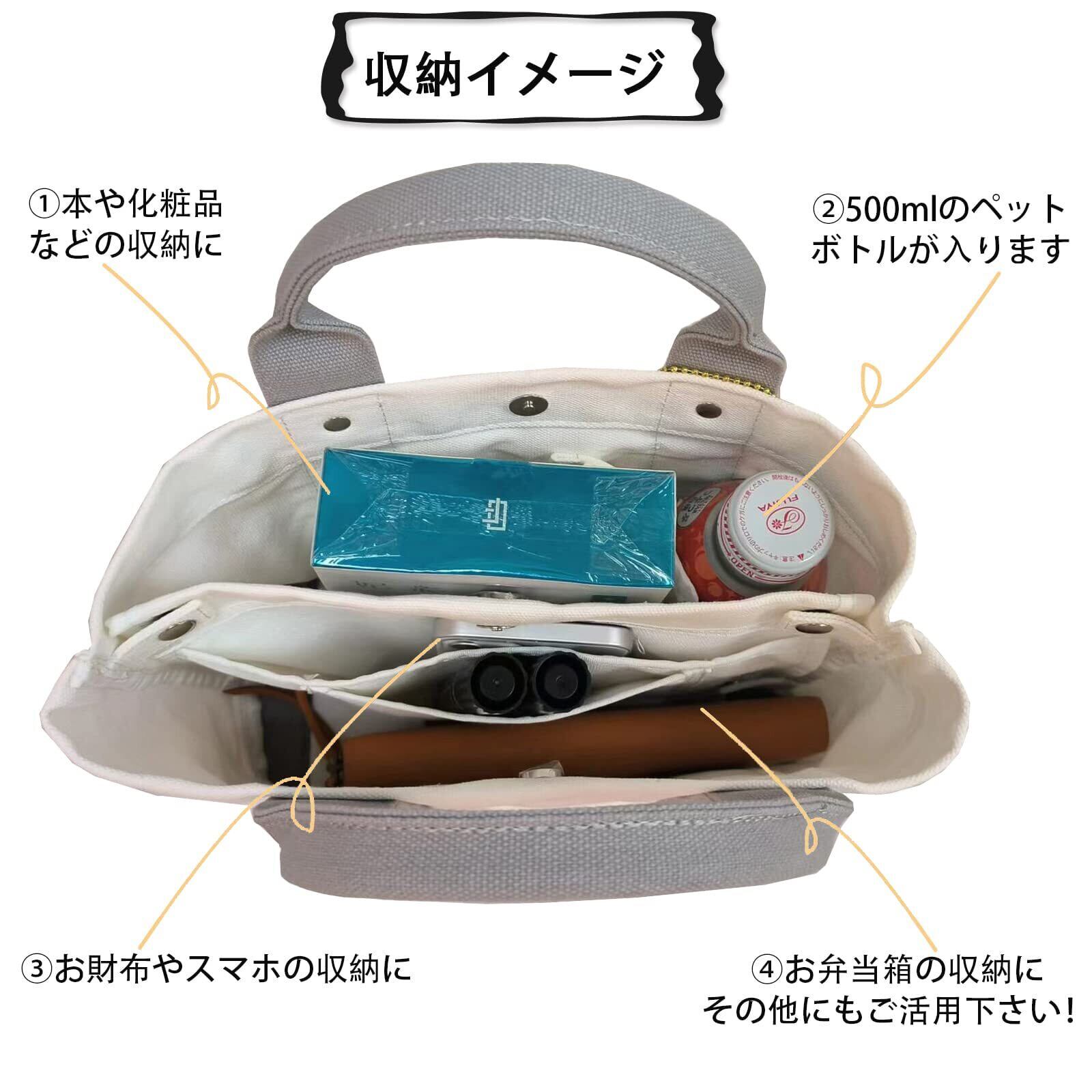 [DOTTI VEN] トートバッグ キャンバス 小さめ 底にICカード入れ 軽量 3つ仕切り ミニトートバッグ ハンドバッグ ランチバッグ 手提げ 自立 サブバッグ レディース メンズ 多ポケット おしゃれ お買い物 男女兼用