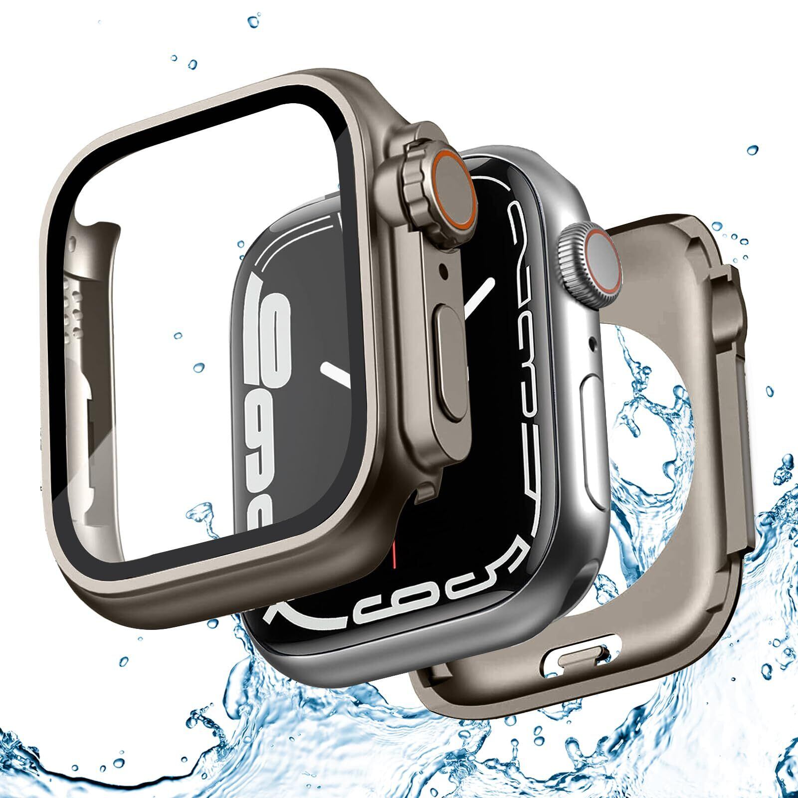 [ILYAML] 【2023冬強化版】 for Apple Watch ケース 45mm 44mm 対応 と互換性があり 数秒で Ultra シリーズの外観に変換できます 360度全面防水 バンド 水泳・スポーツ専用 ガラスフィルム 一体型 apple watch 用 カバー 360フルボディ防水 アップルウォッチ ケース Series6/SE2/SE/5/4 44mm対応 チタンゴールド