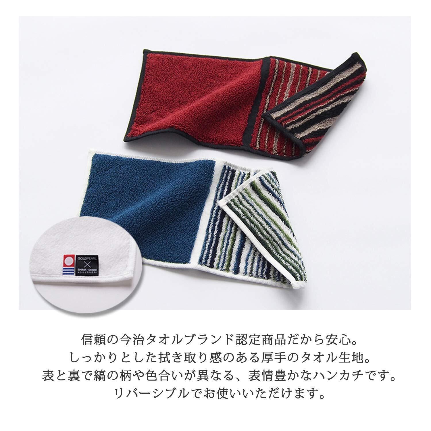 田中産業 ハンドタオル ネイビー 約13×25cm 今治タオル 縞縞×ゴールドパール 08藍彩×緑彩 SS1101-0070-09