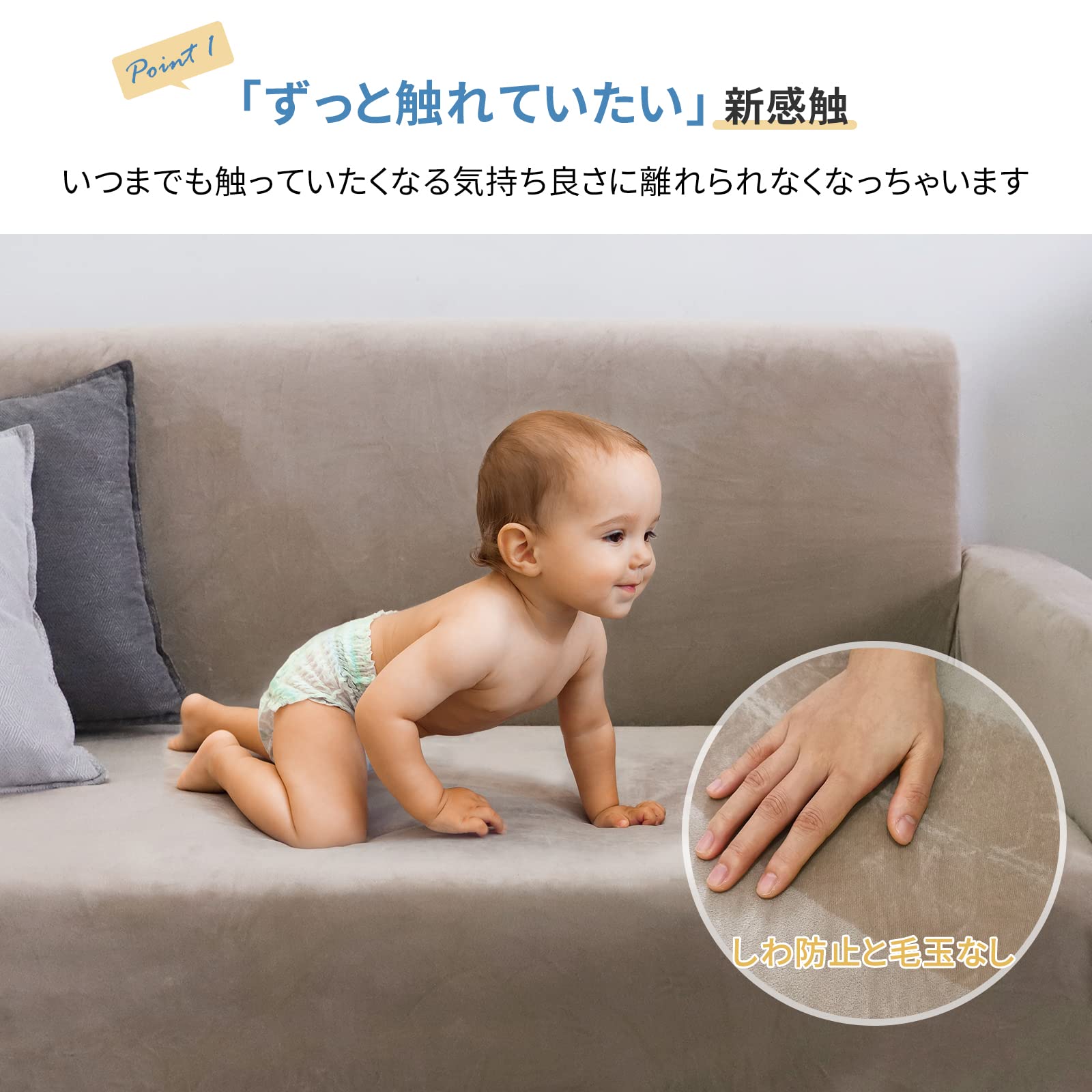 「ペットと一緒にくつろげる新感触」BITTOPソファカバーは、これまでに無いなめらか~な感触の生地で衝撃を受けました!お化粧パフのふわふわ滑らかな肌触りが見事に再現され、ペットと一緒にソファでくつろぐ「理想」もこの生地で「現実」に満足されます。ずっと触れていたい新感触で、いつまでも触っていたくなる気持ち良さに離れられなくなっちゃいます。サイズ:「2人掛け:145-178m」「3人掛け:185-235cm」