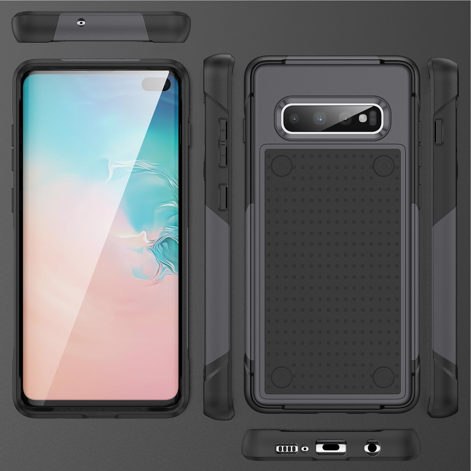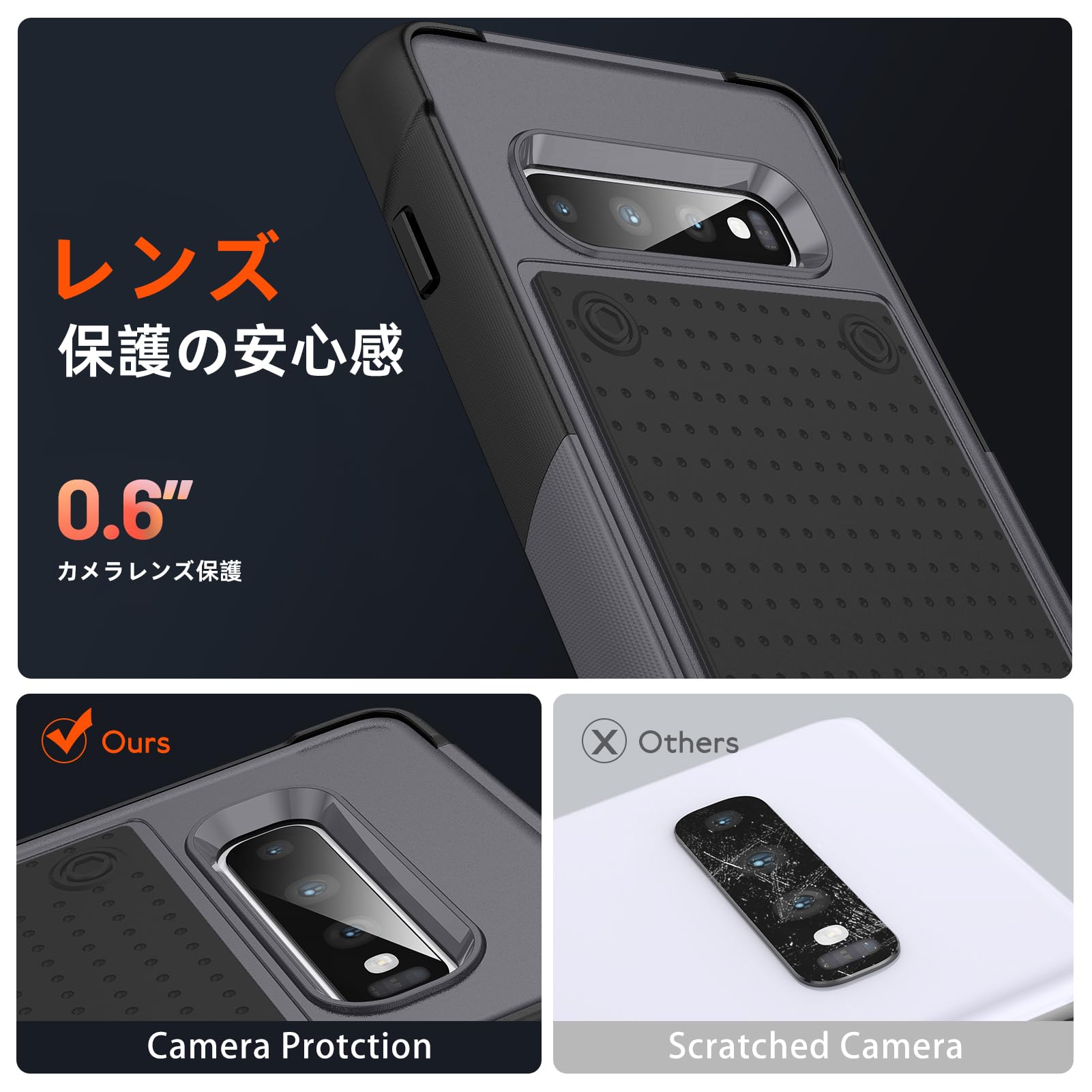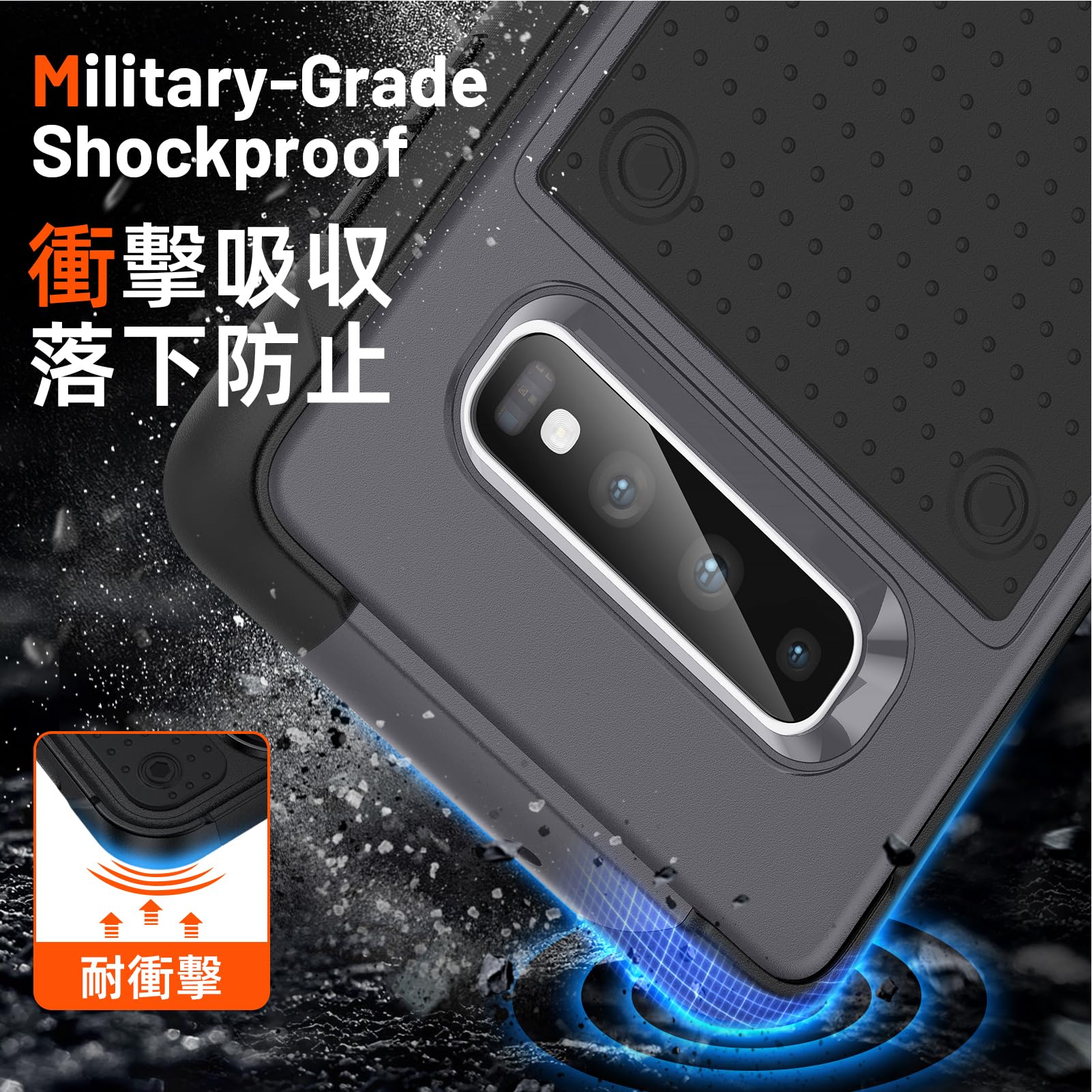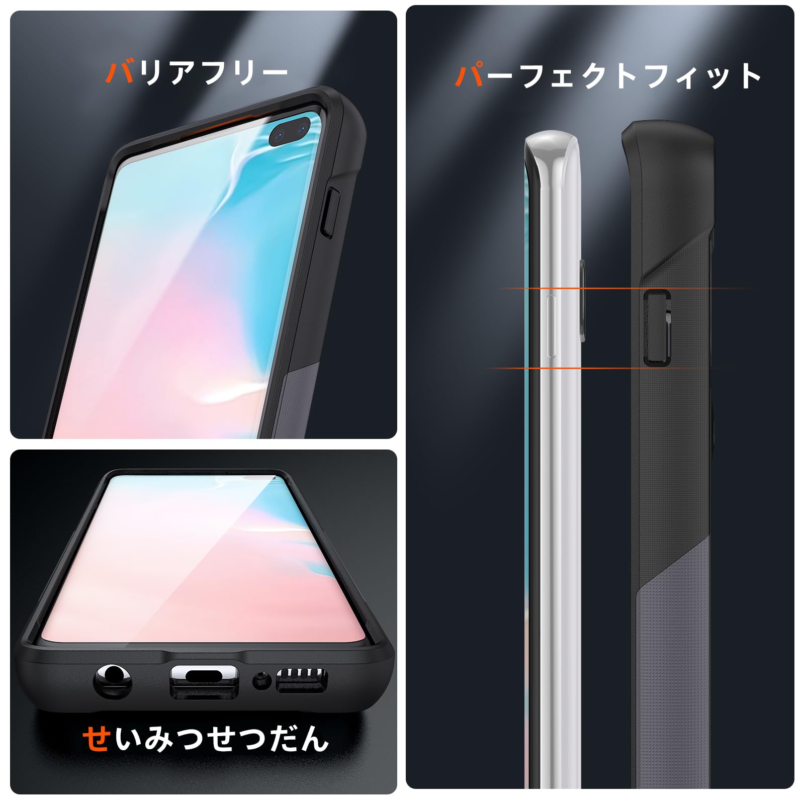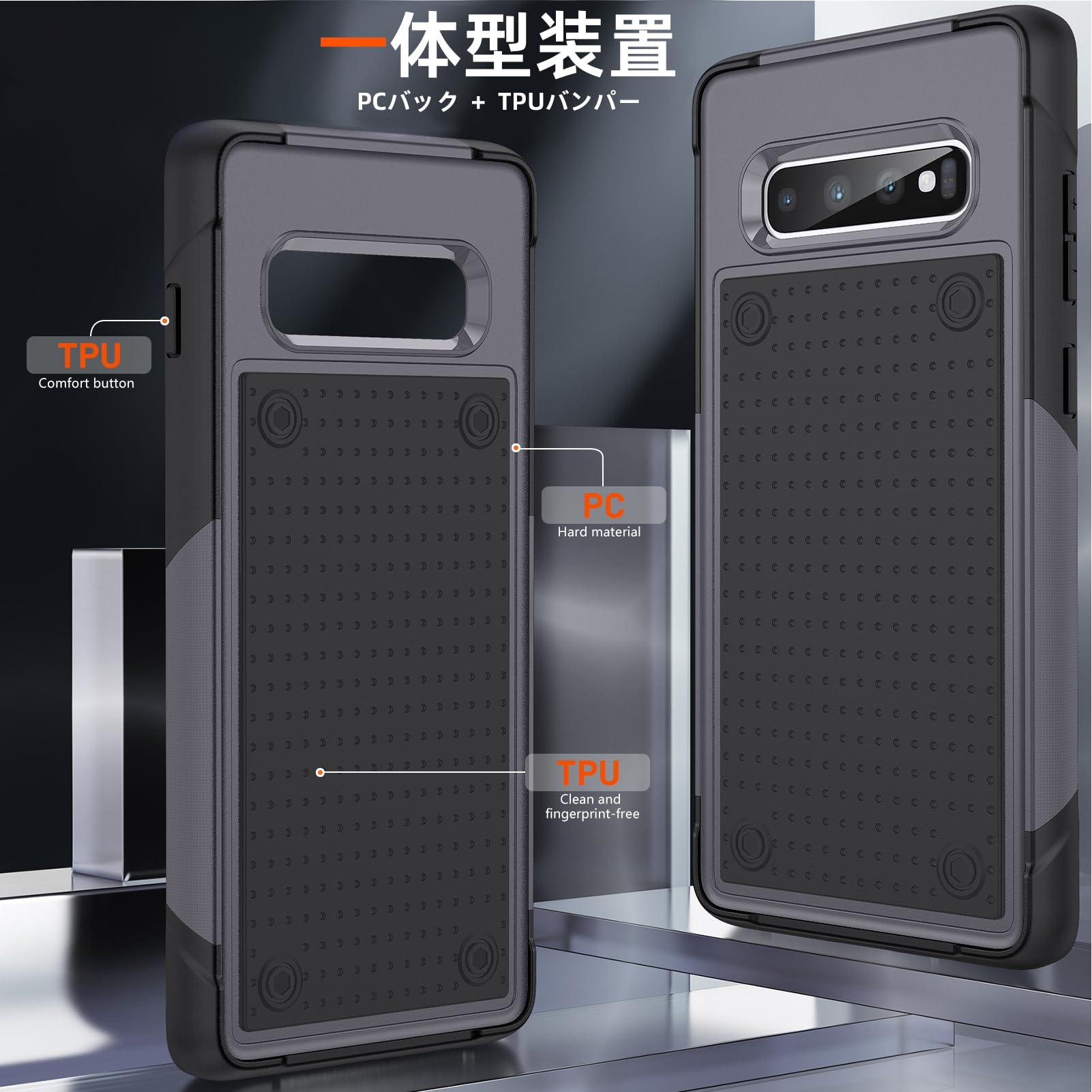 Galaxy S10 ケース 黄ばみなし 耐黄変 Galaxy S10 カバー 耐衝撃 米軍MIL規格取得 レンズ保護 落下防止 滑り止め TPU+PC スマホケース おしゃれ 耐磨 グレー/黒 0111-AS10-04