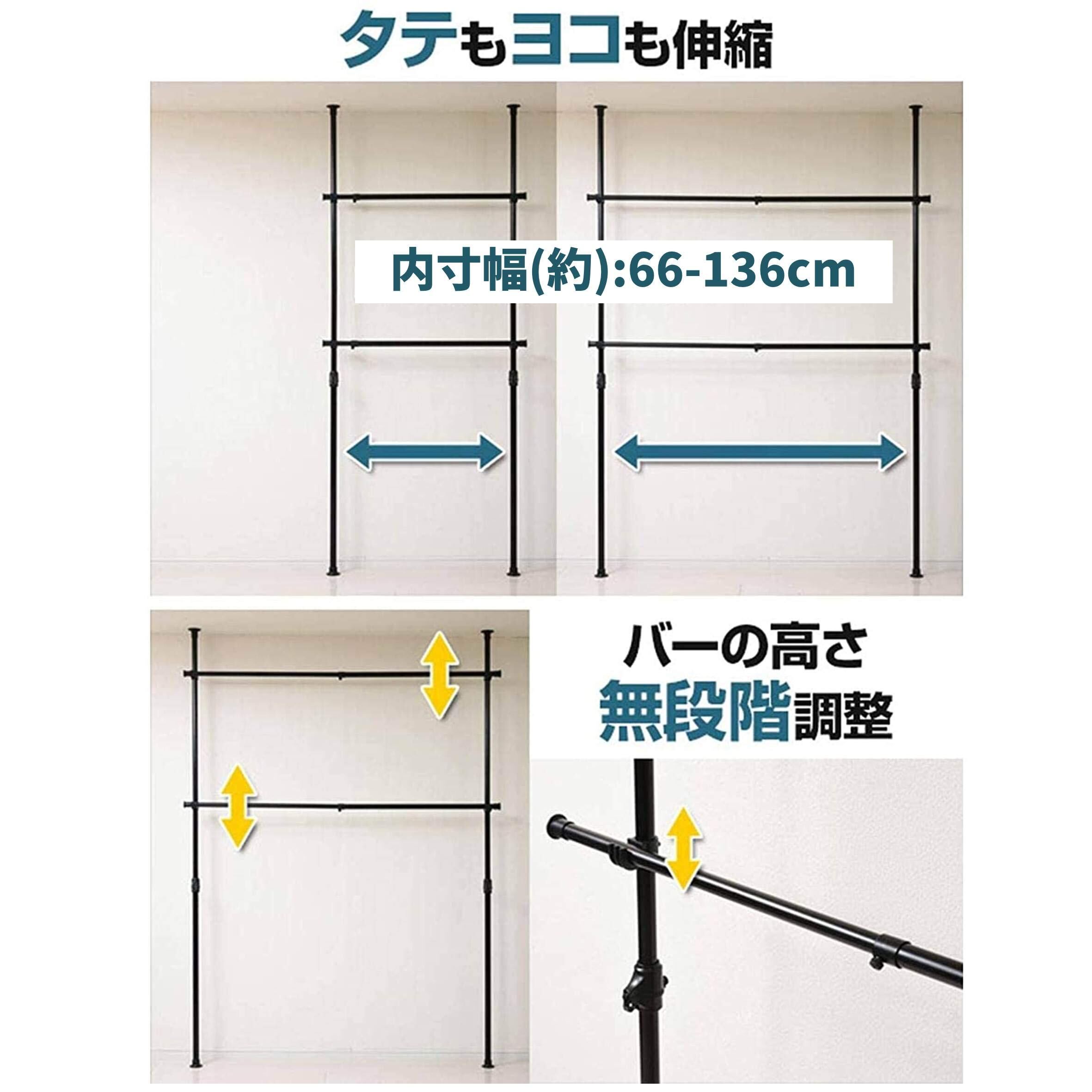 山善(YAMAZEN) 突っ張り ラック ポールハンガー ハンガーラック 全体耐荷重60kg シャツ最大90着 ひっかけ棒付き ワンタッチ突っ張り (実用新案取得済) 縦横伸縮 (幅90-160cm/高さ190-260cm) 衣類 収納 組立品 マットブラック WJ-775RM(MBK) ダブル | geisha Cat*
