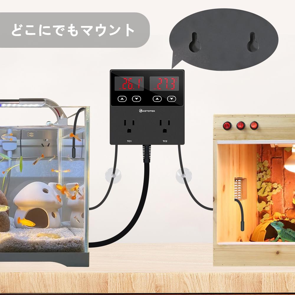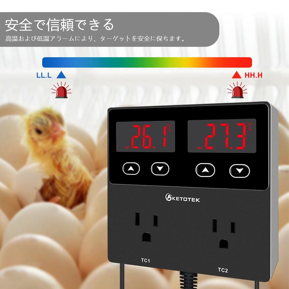 KETOTEK KT99pro デュアルデジタル温度コントローラーコンセント 10A リレー加熱冷却サーモスタット制御ソケットセンサー付き爬虫類醸造発酵繁殖インキュベーション温室用