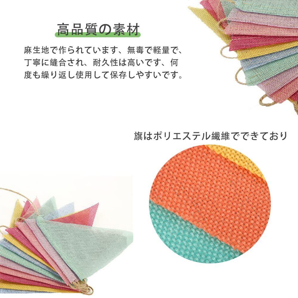 DFsucces 三角旗 ガーランド 誕生日 壁飾り 約4m長 可愛い 子供部屋飾り 壁飾り 結婚式 運動会 文化祭 体育祭 店舗 装飾 麻紐付き (3本セット)