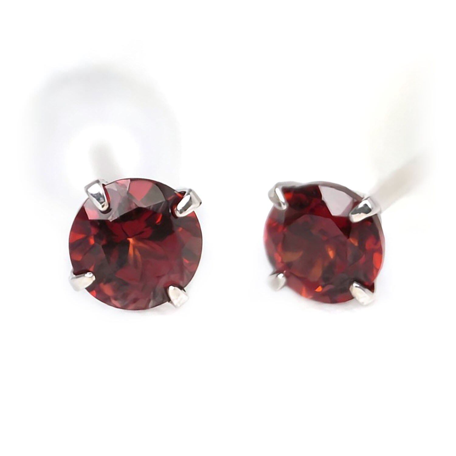 Pt900 プラチナ3mm ピアス スタッドピアス 両耳用ペア 1月誕生石ガーネット