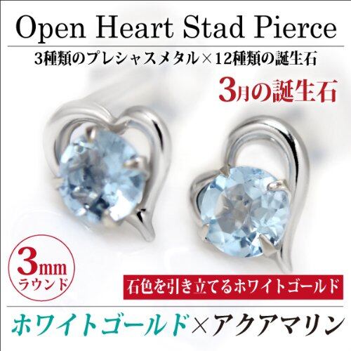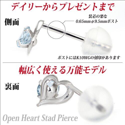 K10 ホワイトゴールド オープンハート ピアス スタッドピアス 両耳用ペア 3月誕生石アクアマリン
