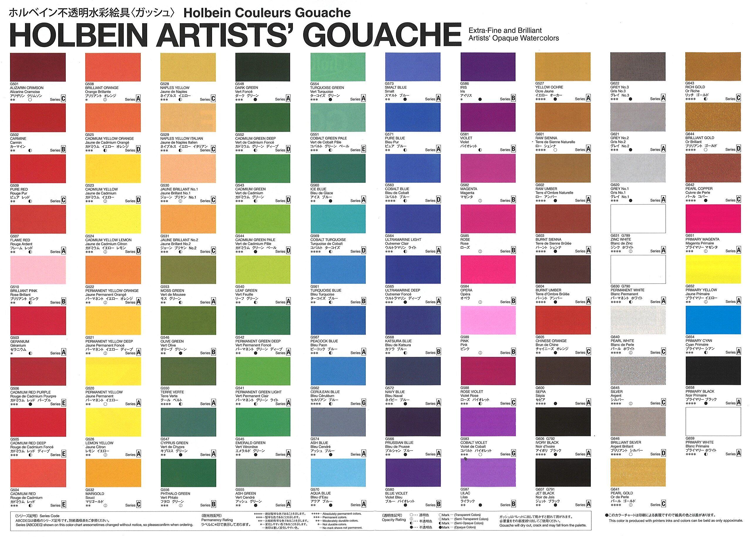 ガッシュ(不透明水彩絵具)は顔料とアラビアゴムのメディウムで作られていますが、透明水彩絵具に比べ顔料分が多いため、塗り重ねによって下の色を覆いかくすような色面の表現ができます。