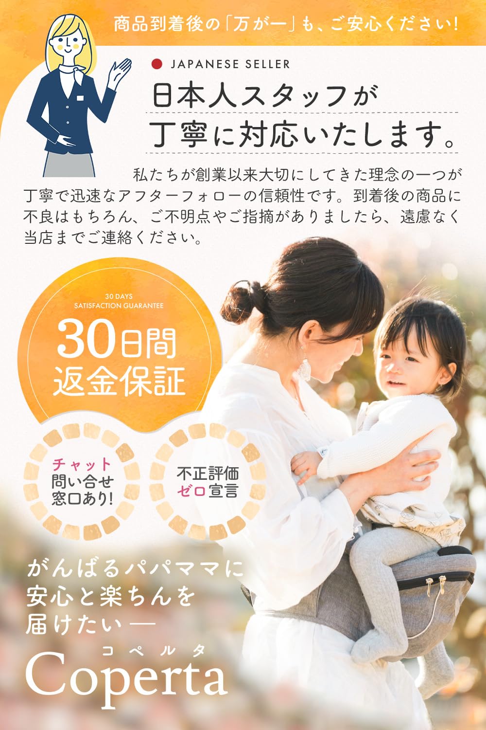 【商品使用】フリーサイズ 推奨対象年齢:腰が座ってから〜約36ヶ月頃まで 推奨耐荷重:20kgまで ウエスト:約70cm〜115cm ブランド:Coperta (コペルタ)