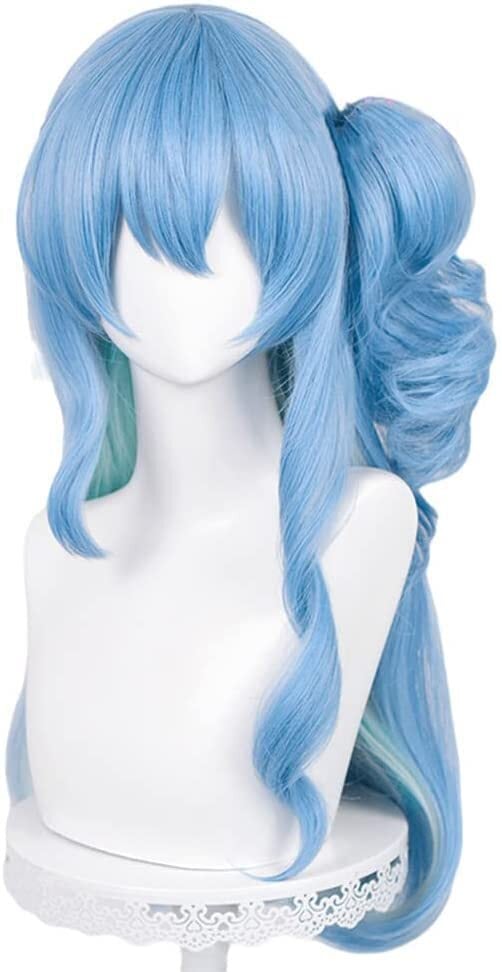 コスプレウィッグ 耐熱ウィッグ 星街すいせい 変装用ウィッグ cosplay wig かつら 専用ネットと櫛付 イベント ブルー (c)