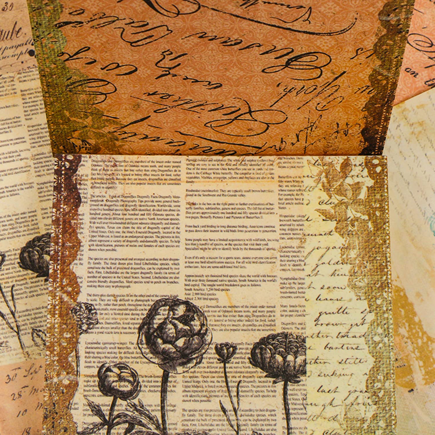 「レトロなデザイン」素材紙は色の組み合わせにレトロで上品な雰囲気があります。ヴィンテージ風ペーパーのセットです。スクラップ新聞などを作るのに適しています。