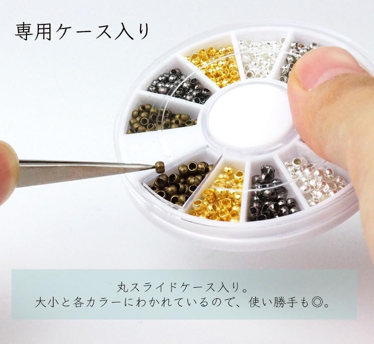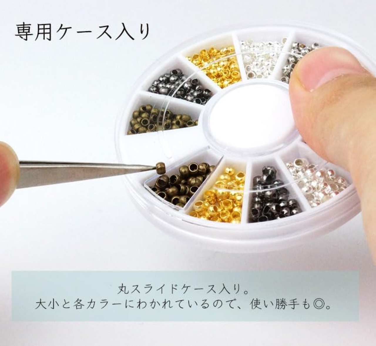 prendre つぶし玉 約540個 6色 2サイズ 2.5mm 2mm 専用ケース入り ゴールド シルバー ホワイト ブラック アンティークゴールド エンドパーツ かしめ玉 アクセサリーパーツ ハンドメイドパーツ セット PR-TUBU | geisha Cat*