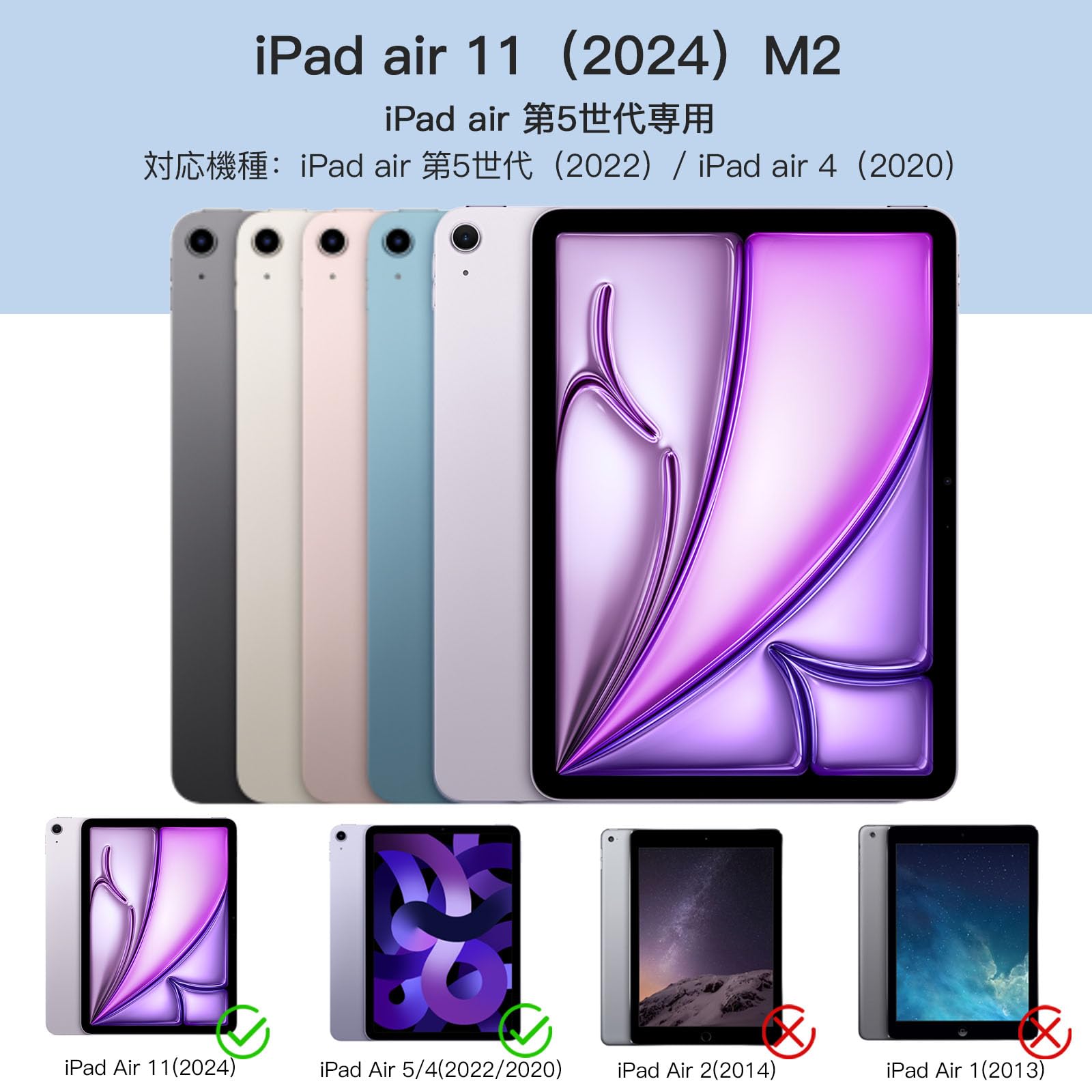 ✫【対応機種】iPad Air 11インチ(2025 M3 A3266/A3267/A3270)(2024 M2 A2902/A2903/A2904)、iPad Air 第5/4世代(2022/2020)10.9/11インチケース (モデル番号:A2072/A2316/A2324/A2325)専用透明バックカバー。 (ご注意:他のモデルには対応していません、ご注文の際に、お手元機種の背面にあるモデル番号を確認をお願い致します。)