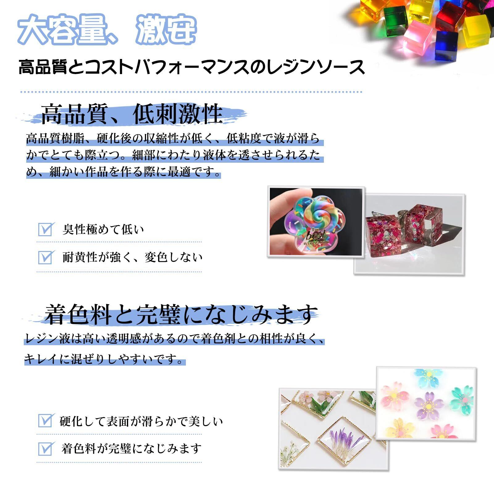 高い透明度と薄いにおい:(意匠登録1776576号、年間最もクリエイティブで人気のあるデザイン。)成形レジン液の透明度がとてもいいです!Bonskyレジン液は黄色くなりにくいです。透明パルプを合わせると、色がとても鮮やかです!良質で無害な材料で作られています。臭気が少なく、安全で環境にやさしいことに驚くでしょう。そして時間が経つにつれて簡単に黄色くなることはありません。