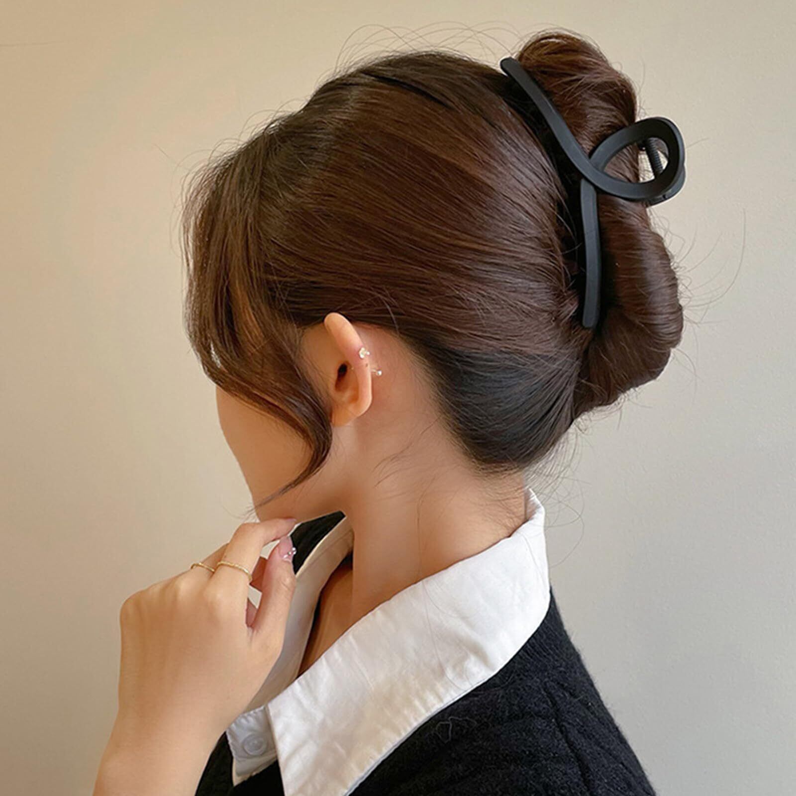 ALLMIRA ヘアクリップ 大きめ しっかりとまる 2個セット 髪留め クリップ しっかり バンスクリップ ヘアくりっぷ ヘアアクセサリー 大人 韓国 可愛い おしゃれ かみどめ クリップ 髪とめクリップ 髪くりっぷブラック (D)