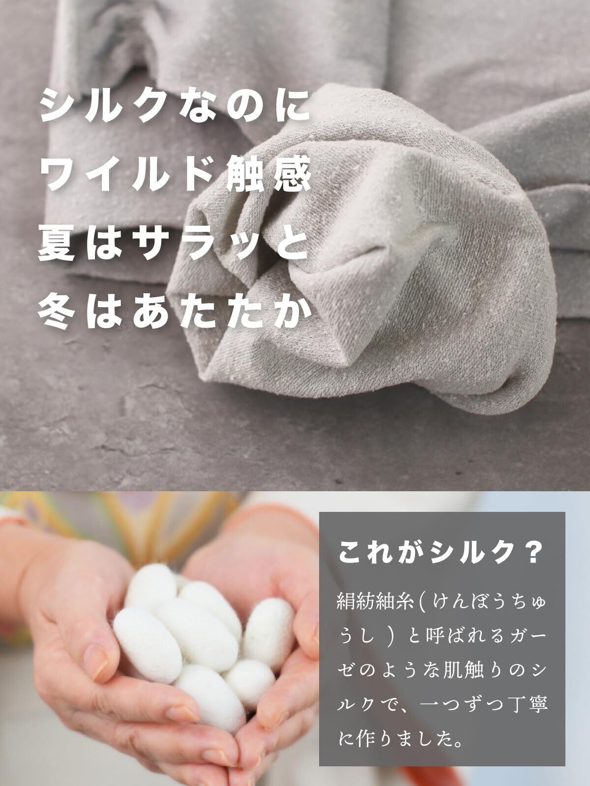 【カジュアルな印象】つるつるとしたシルクではなく、ワイルドな絹を使用しているため、敏感肌や乾燥肌の方でも安心してUVカットができます。