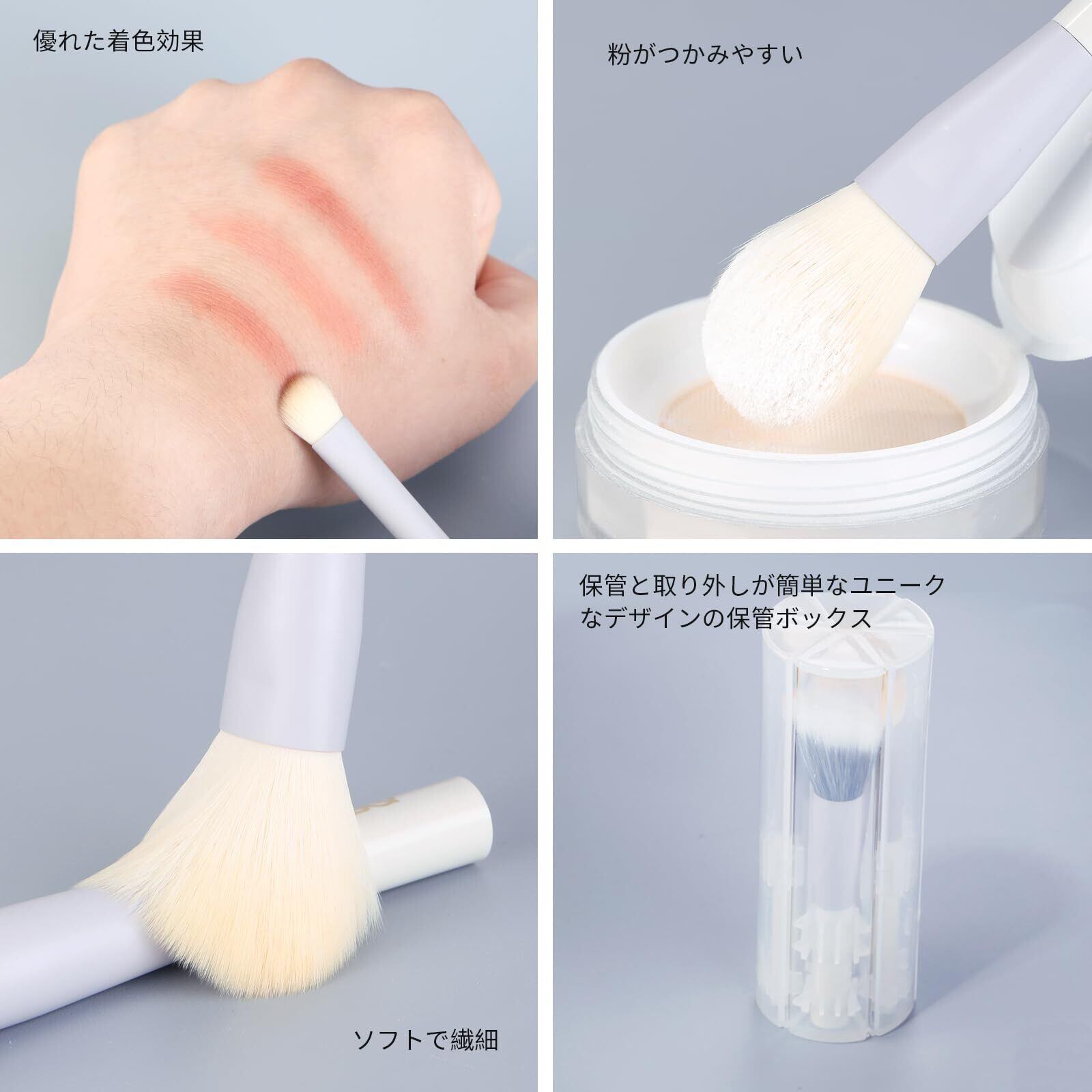 【心地よい感触】品質にこだわり、タクロン100%・天然木を使用。 天然毛とは異なり、肌に触れた瞬間から刺激が少なく、驚くほど柔らかな感触をお楽しみいただけます。 動物アレルギーや敏感肌の方にも安心です。 優れたキープ力と心地よいテクスチャーで、メイクのノリをさらに高めます。