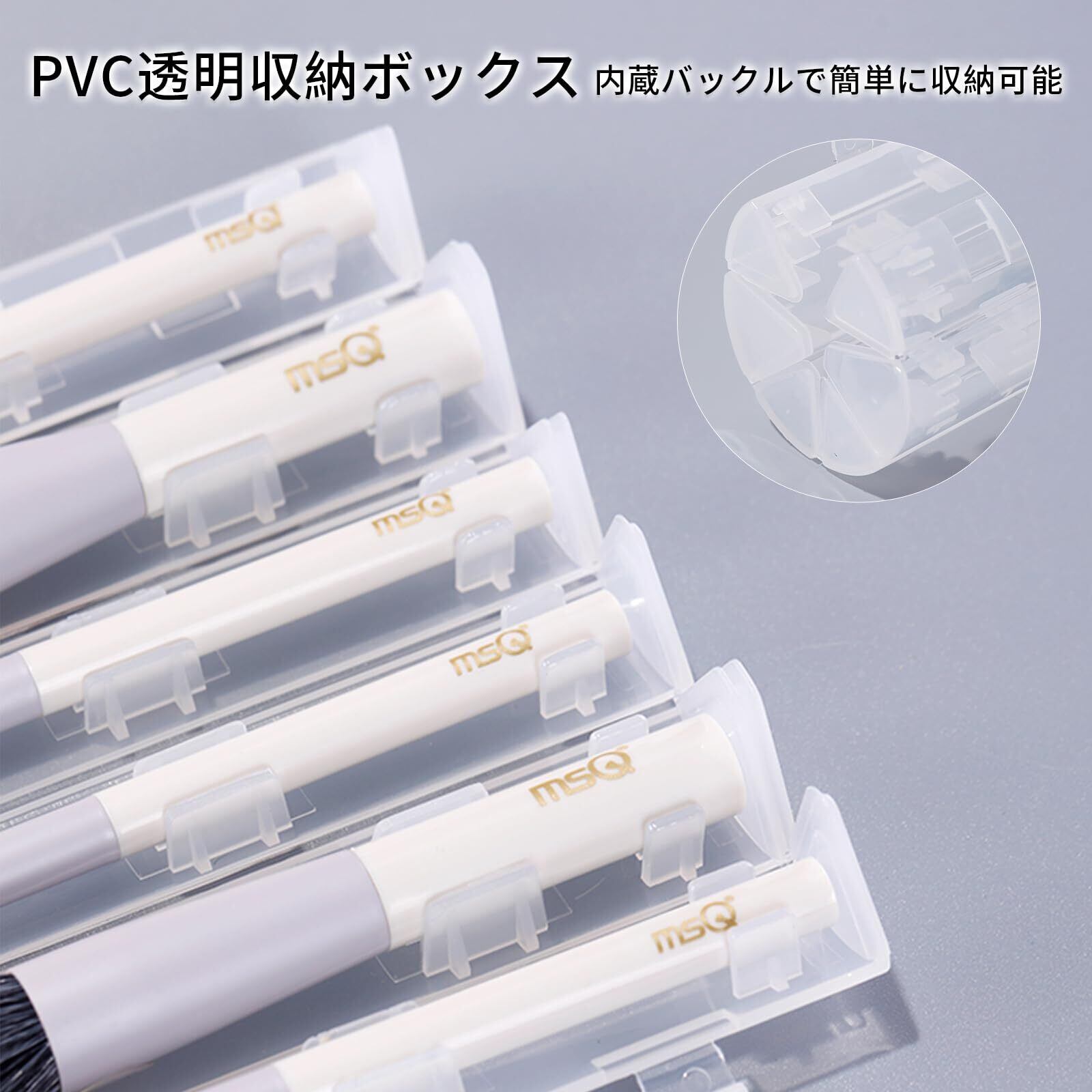 【ユニークなデザイン】内部バックル付きのPVC透明収納ボックスが装備されており、ブラシホルダーとして使用でき、ブラシをきれいに保管できます。 メイクブラシの傷みを防いで保管することもできます。 通勤、通学、旅行や出張の際にもカバンに入れて気軽に持ち運べ、お化粧直しにも便利です。