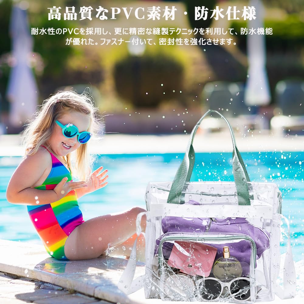【幅広い用途】:この透明バッグは普段使いはもちろんビーチやプール、ダイビング、ジム、温泉、通学、キャンプ、お花見、運動会、ピクニック、トレーニングや旅行等まで幅広くご使用いただけます。シンプルな色とデザインなので、リゾートだけでなく、通勤やお出かけにもお勧めます。また、お子様のおもちゃ収納袋やショッピングバッグとしても適します。