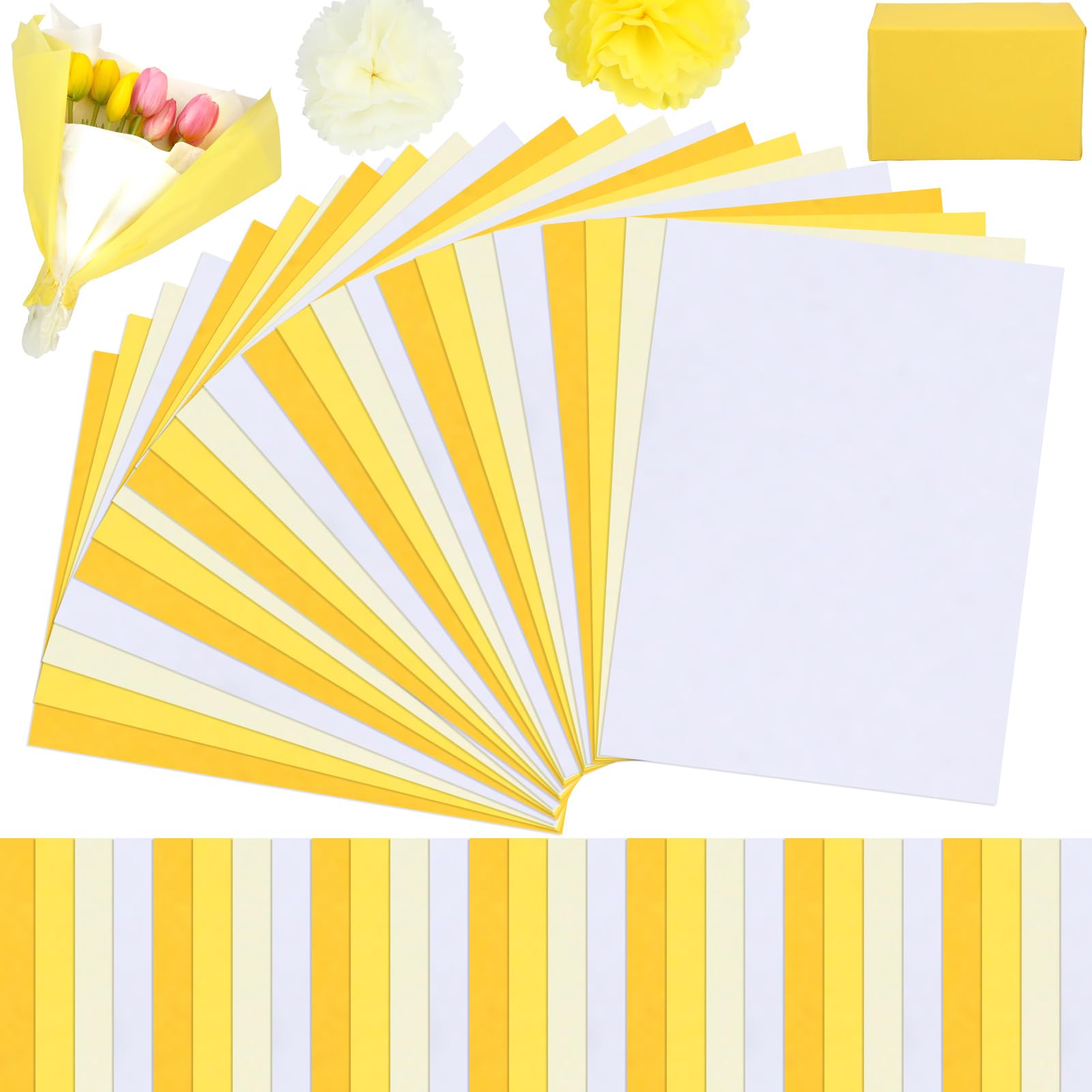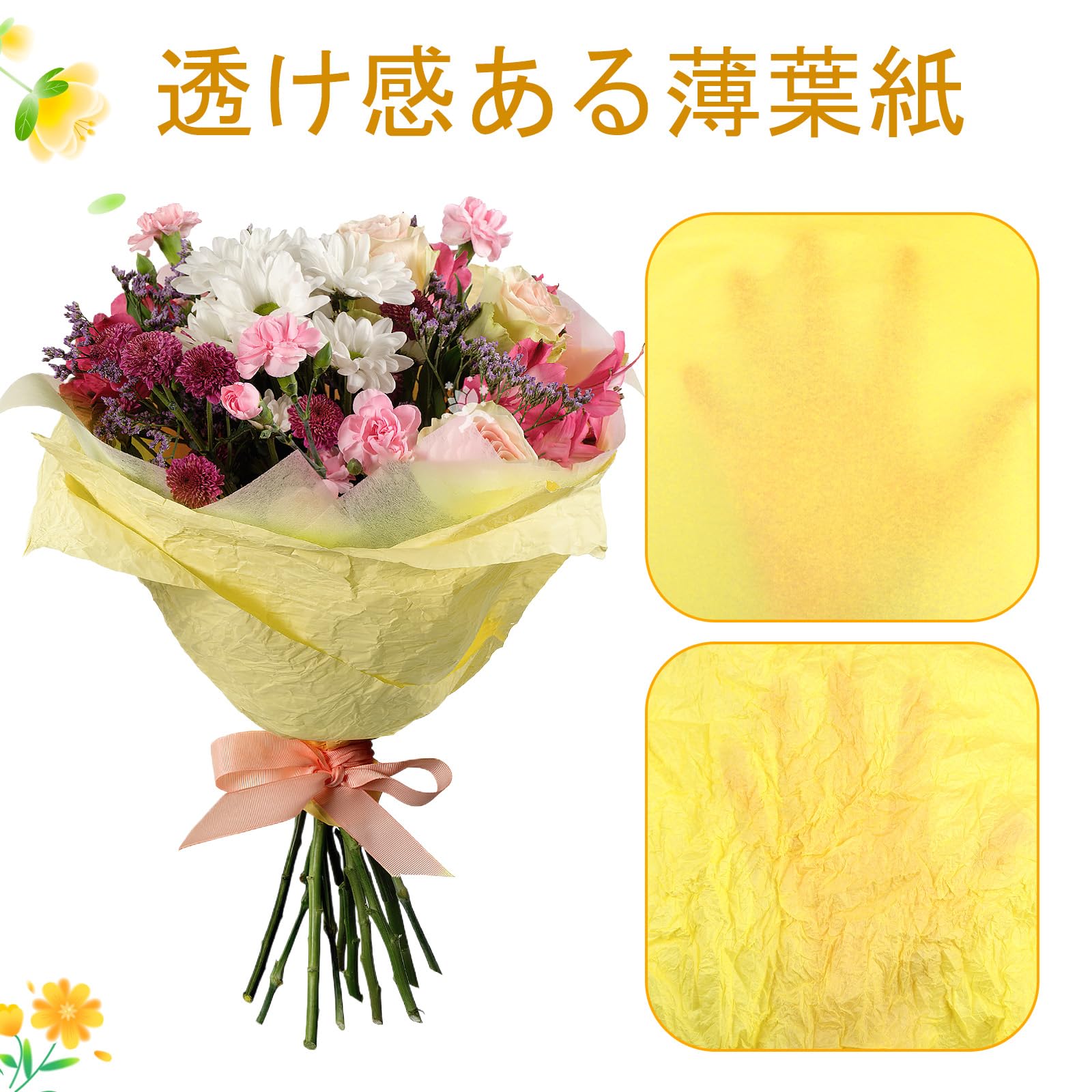 METBOU お花紙 薄葉紙 120枚 おはながみ 黄色 大判 ラッピングペーパー ラッピング 紙 包装紙 ペーパーフラワー 紙 ペーパーポンポン ラッピングペーパー 35cm×50cm