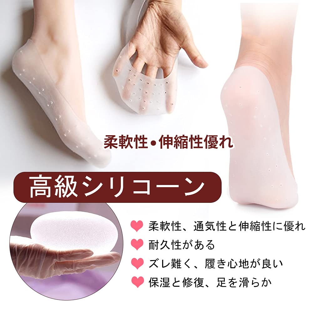 JEWYOCO 3ペア シリコンソックス かかとケア 靴下 保湿 角質ケア ガサガサ ひび割れ 対策 痛みの緩和 伸びる 通気穴付き ソックス 男女兼用(ホワイト22.5~24.5cm対応)