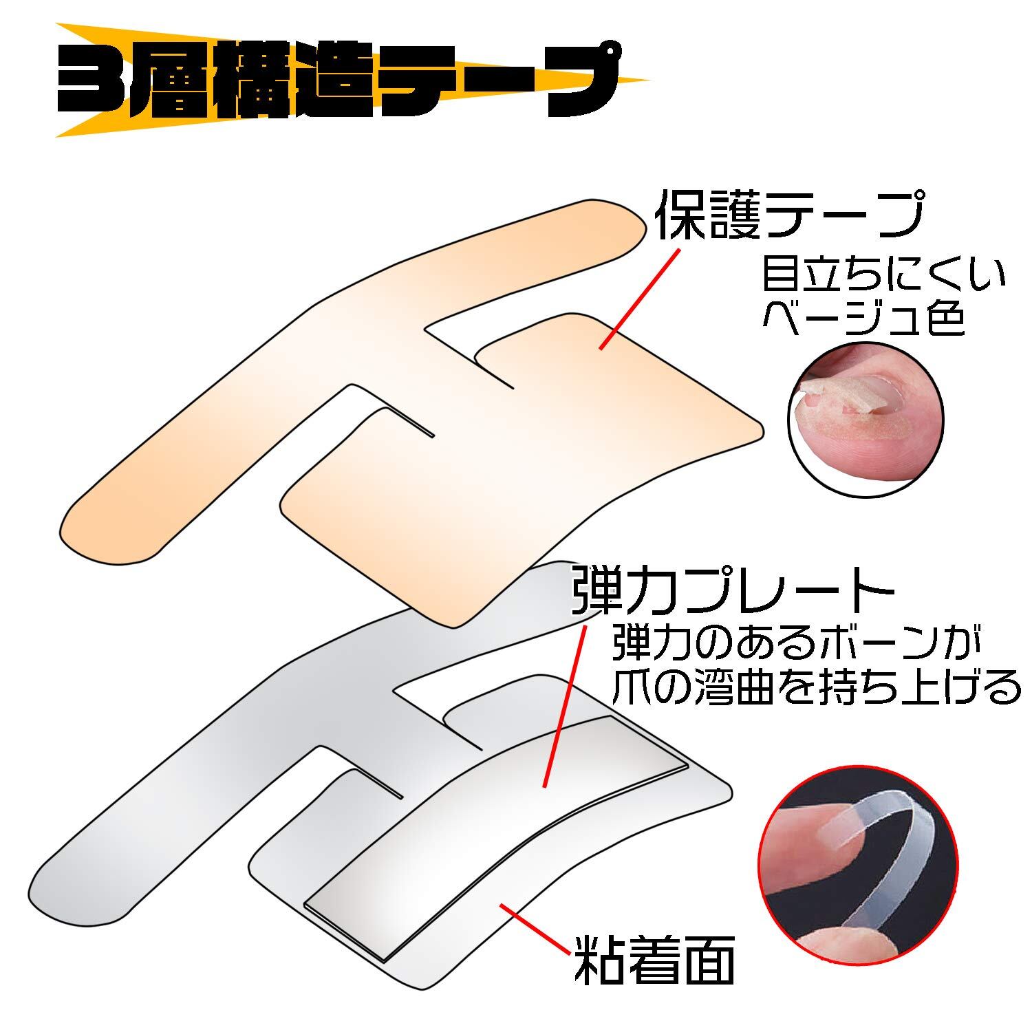 巻き爪ダブルケアテープ 60枚入 持ち上げ シール 食い込み 痛み サポート 貼るだけ 足 フットケア