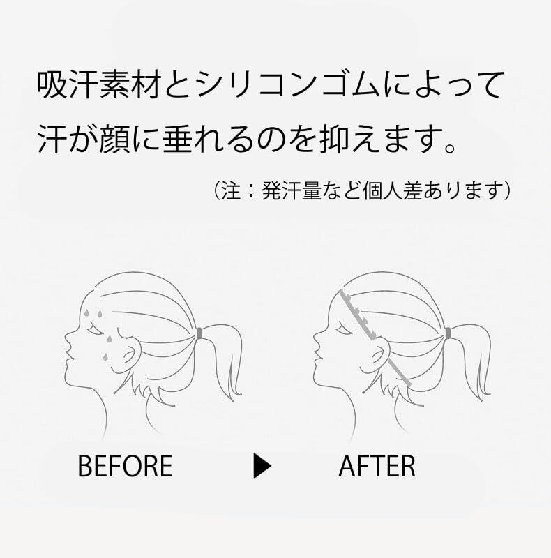 吸汗速乾・抗菌・防臭なのでスポーツなどで汗が垂れるのを止めるのに役立ちます。またスポーツ中に髪が乱れることなくシンプルにおしゃれに収めることができます。