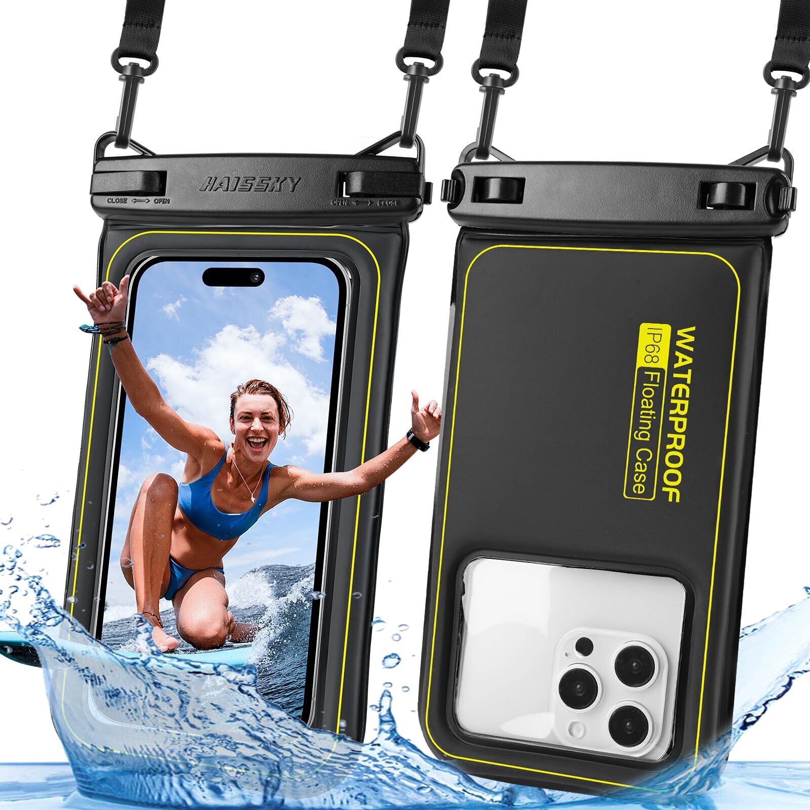 「2枚セット・水に浮く」スマホ 防水ケース LILIYYA:IPX8 浮く プール スマホ 防水 ケース 海 防水スマホケース 完全防水 すまほ ぼうすい バッグ カバー ポーチ 水中 撮影 顔認証 通話 アイホン スマホ 携帯防水ケース 首掛け 斜め掛け 海水浴 水泳 潜水 iPhone 16 15 14 plus pro promax se Pixel Xperia に対応 7インチ 黒