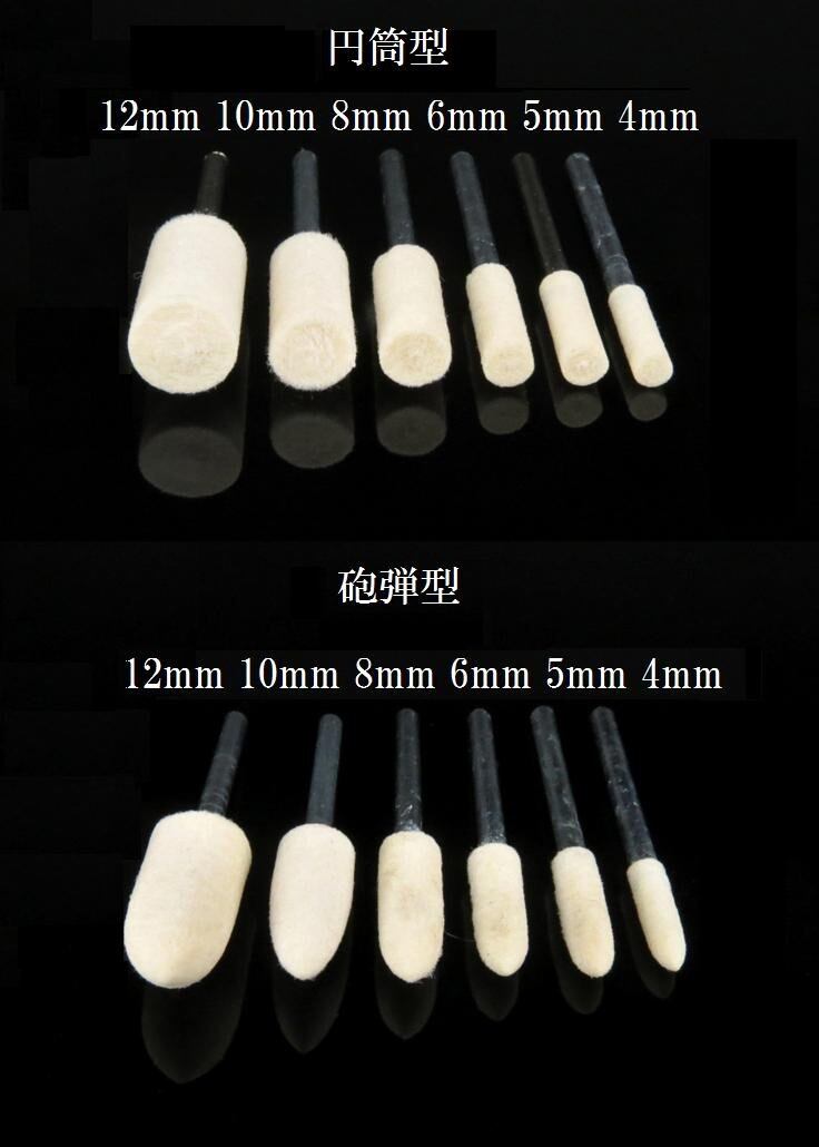 羊毛 フェルト バフ 3mm 軸 ウールバフ 鏡面 研磨 や 金属 磨き 仕上げ 円筒 砲弾 型 24本 セット