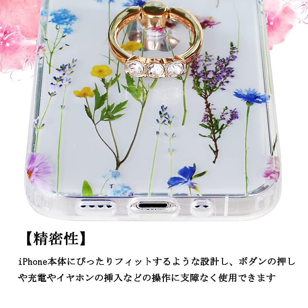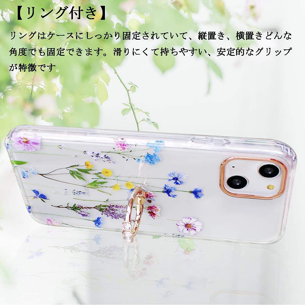iPhone 用 ケース クリア リング付き かわいい 花柄 ハード PC