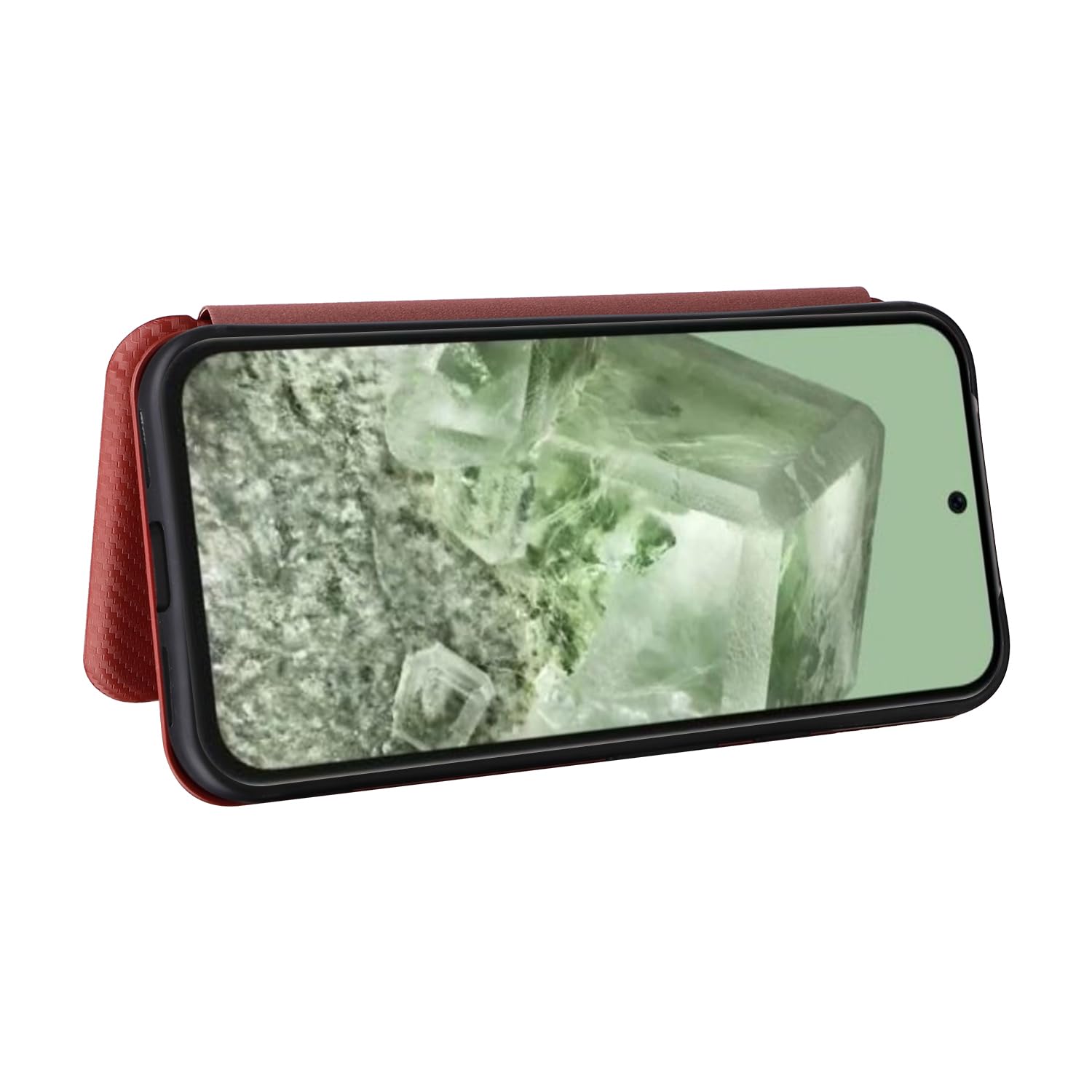 Pelanty Pixel 8A ケース 手帳型 炭素繊維調 Google Pixel 8a 携帯カバー pixel8a 背面ケース 軽量 薄型 財布型 カード収納 グーグル ピクセル8a スマホケース マグネット ストラップ付き 耐衝撃 全面保護-ブラウン