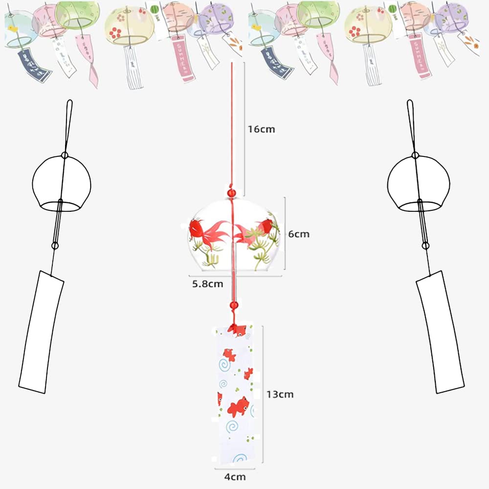風鈴 ウィンドチャイム ガラス 江戸風鈴 風鈴 金魚 風鈴 短冊 四個セット 涼しい感じ 夏の風物詩 窓・屋根飾り 室内外 兼用 贈り物 飾り物