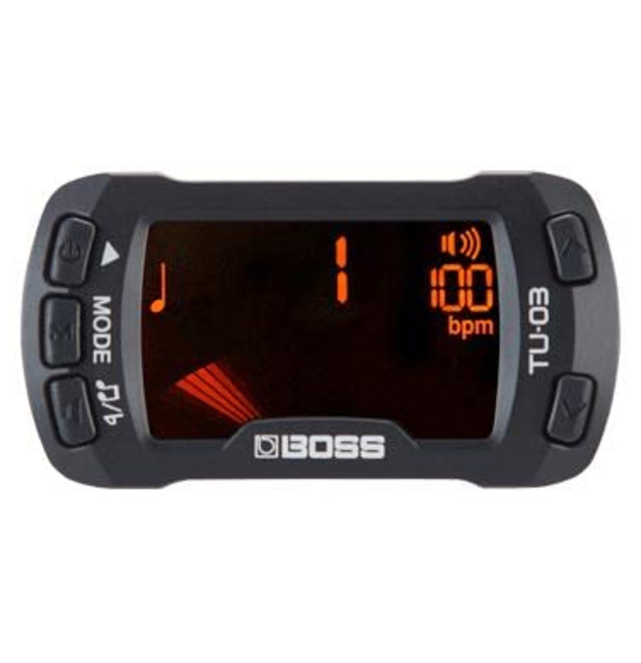 TU-03は、クリップ式のコンパクトな筐体にシンプルな操作性を備えており、楽器奏者にとって欠かせないチューナーとメトロノームという2つのツールに手軽にアクセス可能です。ギターやベースをはじめ様々な弦楽器のヘッドに取り付けが可能で、いつでもどこでも楽器と一緒に使用することができます。5種類のチューニング・モードを搭載したスピーディーで正確なチューナー機能と、スピーカーを内蔵し、パターン/ビートのバリエーションを多数搭載したメトロノーム機能が一体となり、クリップ式とは思えない多彩なパフォーマンスを発揮します。