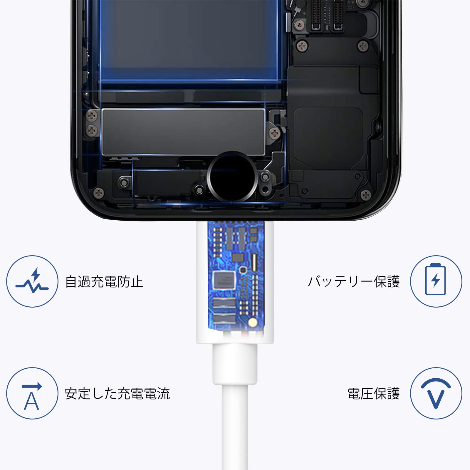 究極の耐久性・高品素材:弊社のiphone充電器ケーブルは耐久性を高めるため、USB側先端に保護層を追加し、外部は優れたTPE素材で覆われ、伸びが良いです。内部の無酸素銅には、アルミニウム箔なども劣化しにくく、耐摩耗性も優れています。コネクタの根元も耐久性に優れた構造で、一般的なケーブルよりも10倍以上耐久性が高く、安心して充電できるiphone充電器ケーブルです。