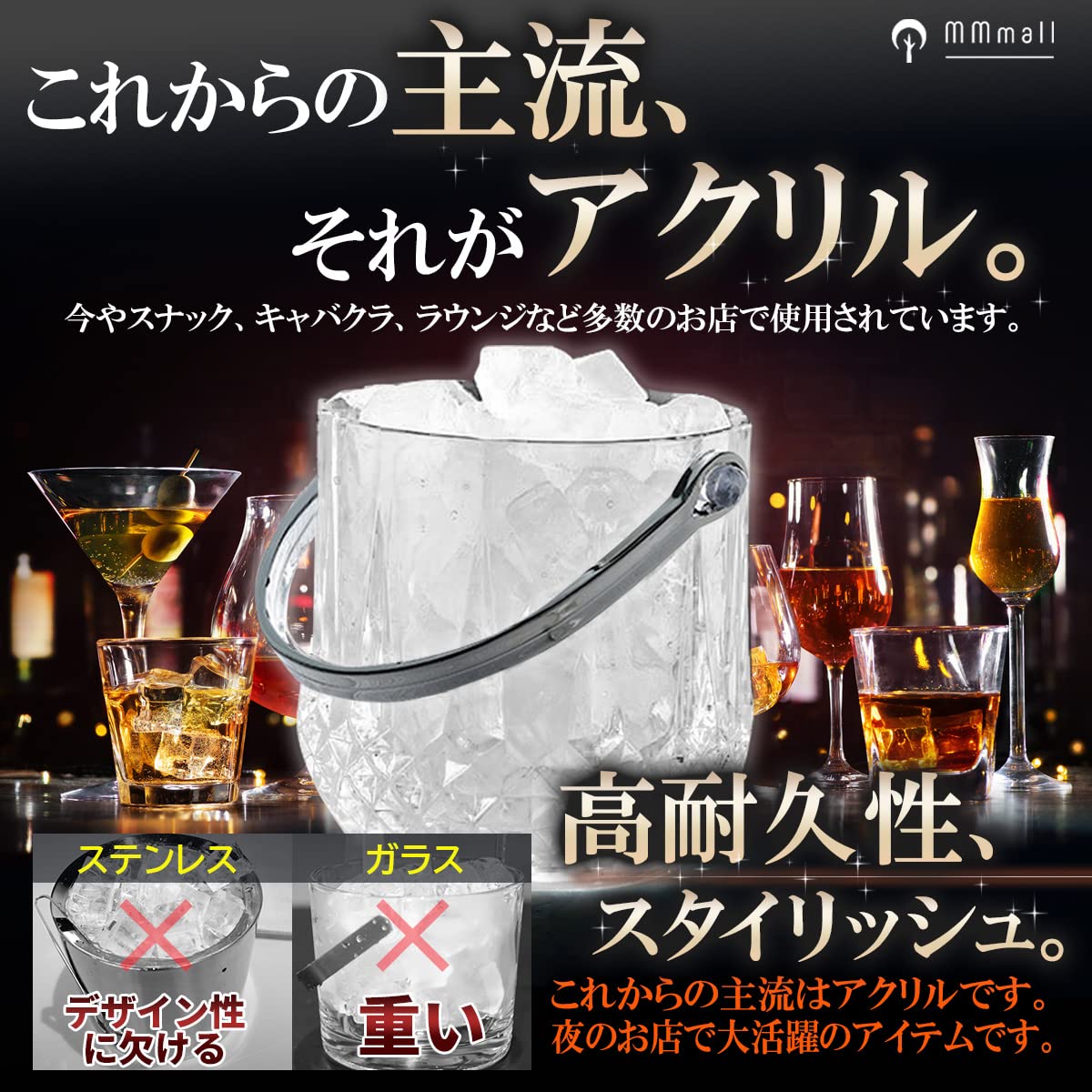 MMmall アイスペール プラスチック製アクリル 氷入れ 業務用 トング付き マドラー付き (クリア)