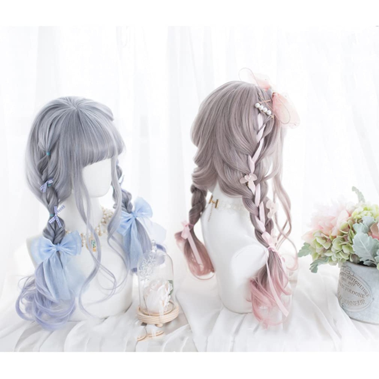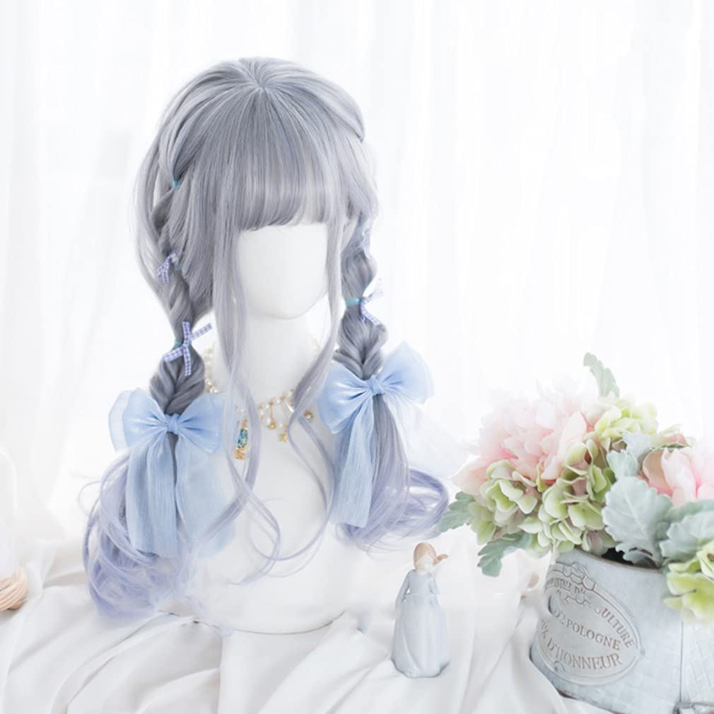 ロリータ ウィッグ 原宿風 GAL系 コスプウィッグ ゴスロリ 耐熱 レディース (グレー 水色) メッシュ ロング 巻き髪 森ガール ゆめかわいい お姫 小顔 パーティー 仮装 日常 かつら wig (水色)