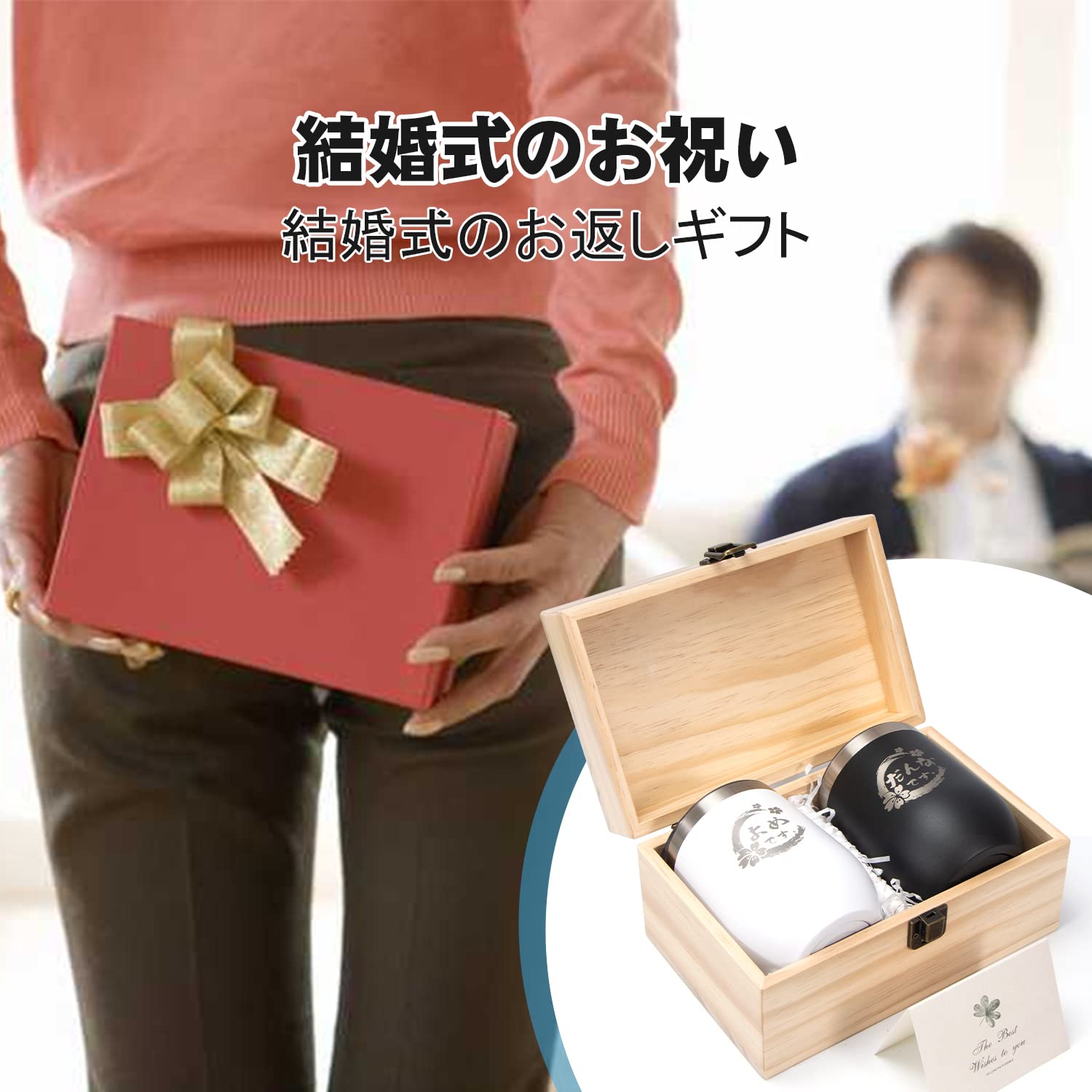 結婚祝い、結婚記念日 プレゼント、これはロマンチックな結婚式を目撃する質の高いプレゼントです。このタンブラーペアは、結婚祝いにはもちろん、結婚記念日には妻や夫へのプレゼントにもぴったりです。ご注意:木箱は100%天然木材を使用しているため、表面の風合いや色、表面の刻印したロゴの色など一つ一つが異なります。予めご了承ください。