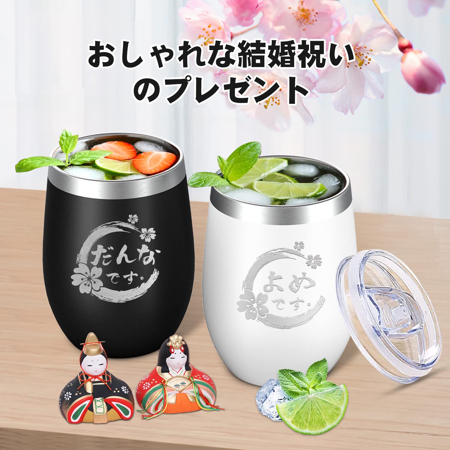 黒、白 のカップルタンブラーペア、日本の定番デザイン「だんな です。」と「よめ です。」をカップ本体に取り入れ、シックなデザインと美しい意味は、贈り物としても適しています。カップルでお酒を飲みながら記念日をお祝いしたり、普段使いのコーヒーや水割りのマグカップとしてもお使いいただけます。