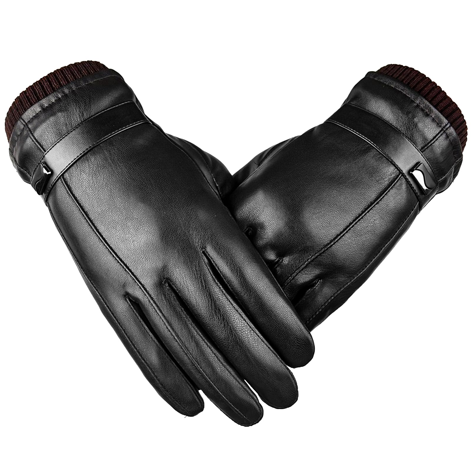 [Kemolpo] 手袋 メンズ 革手袋 スマホ対応 防寒 レザーグローブ 裏起毛 保温 防風 撥水加工 バイク 運転 通勤 秋 冬