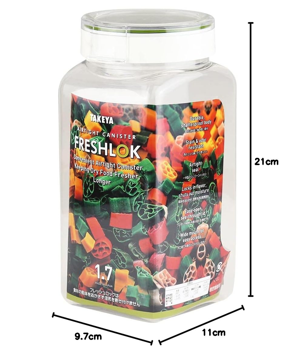 タケヤ化学工業(Takeya) 保存容器 フレッシュロック 角型 1.7L 日本製 湿気を防ぐ ワンタッチ開閉 軽くて丈夫