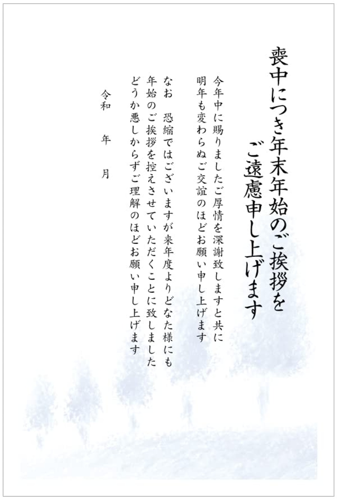 [メイドインたんたん] 喪中はがき 10枚 私製はがき 年賀状じまい文 私製はがき 切手なし 裏面印刷済み (木々)