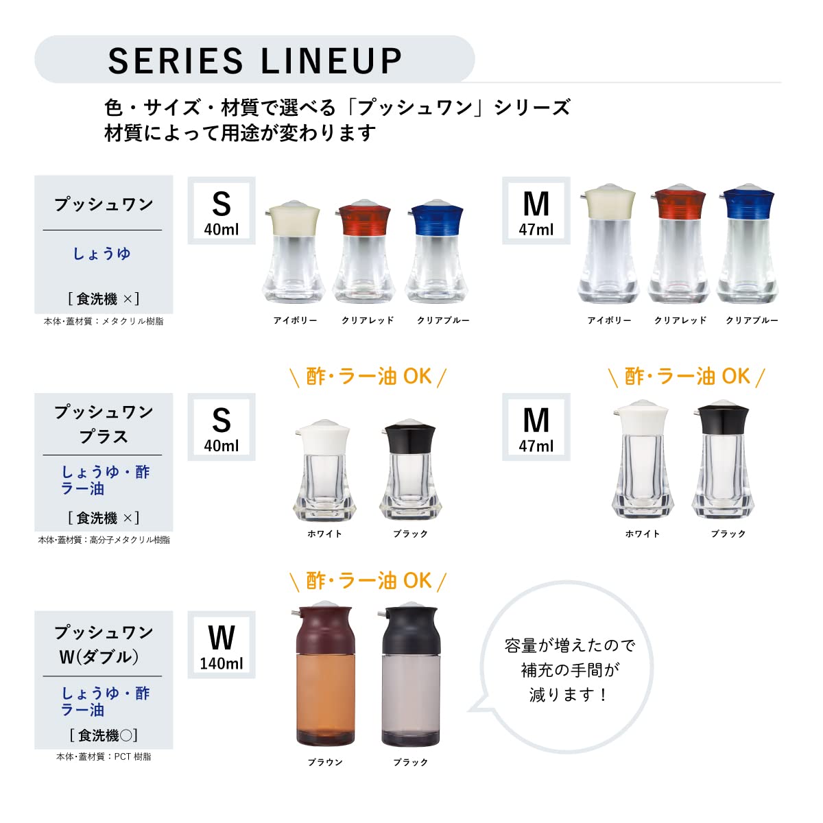 ●ひと押し約0.4㏄ 定量調味料入れかけ過ぎ防止、減塩対策に