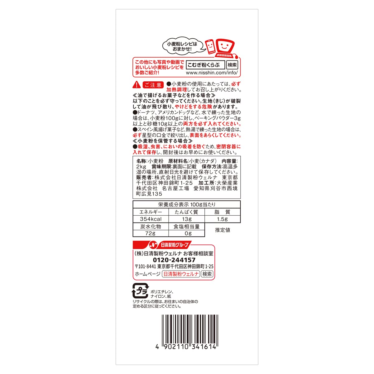 日清製粉ウェルナ パン専用強力小麦粉 2kg