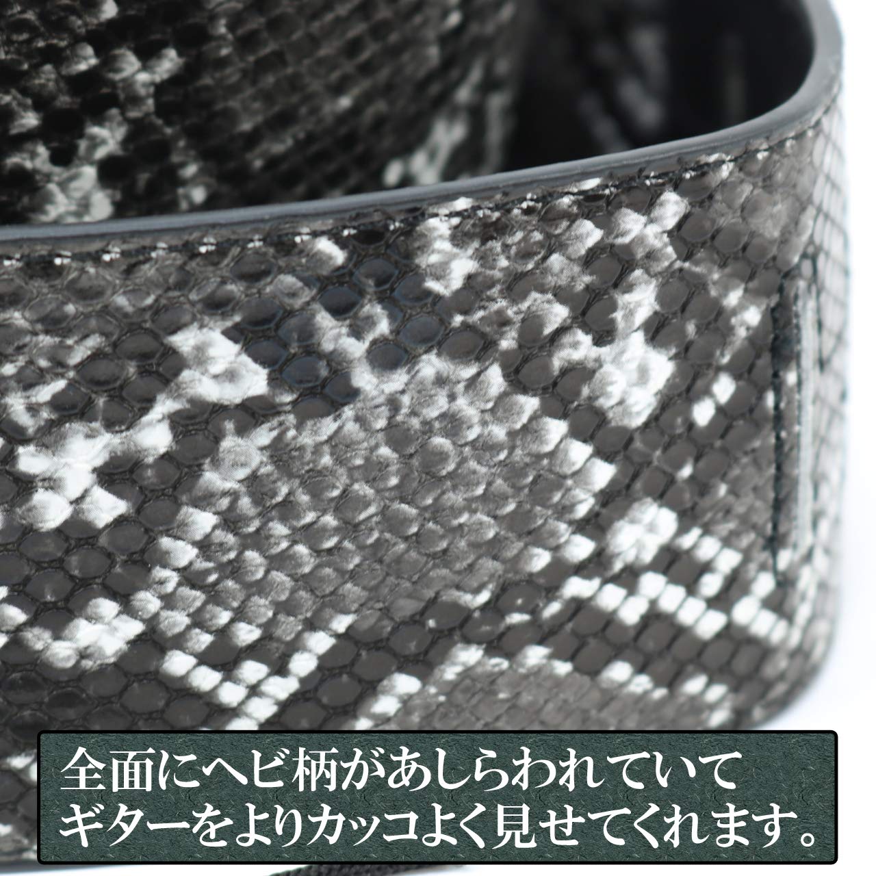 オシャレで高級感のあるヘビ柄:高級感のあるオシャレでクールなヘビ柄デザインのギターストラップです。9段階でストラップの長さを調整できますので、体型に合わせて柔軟に調整してお使いいただくことができます。