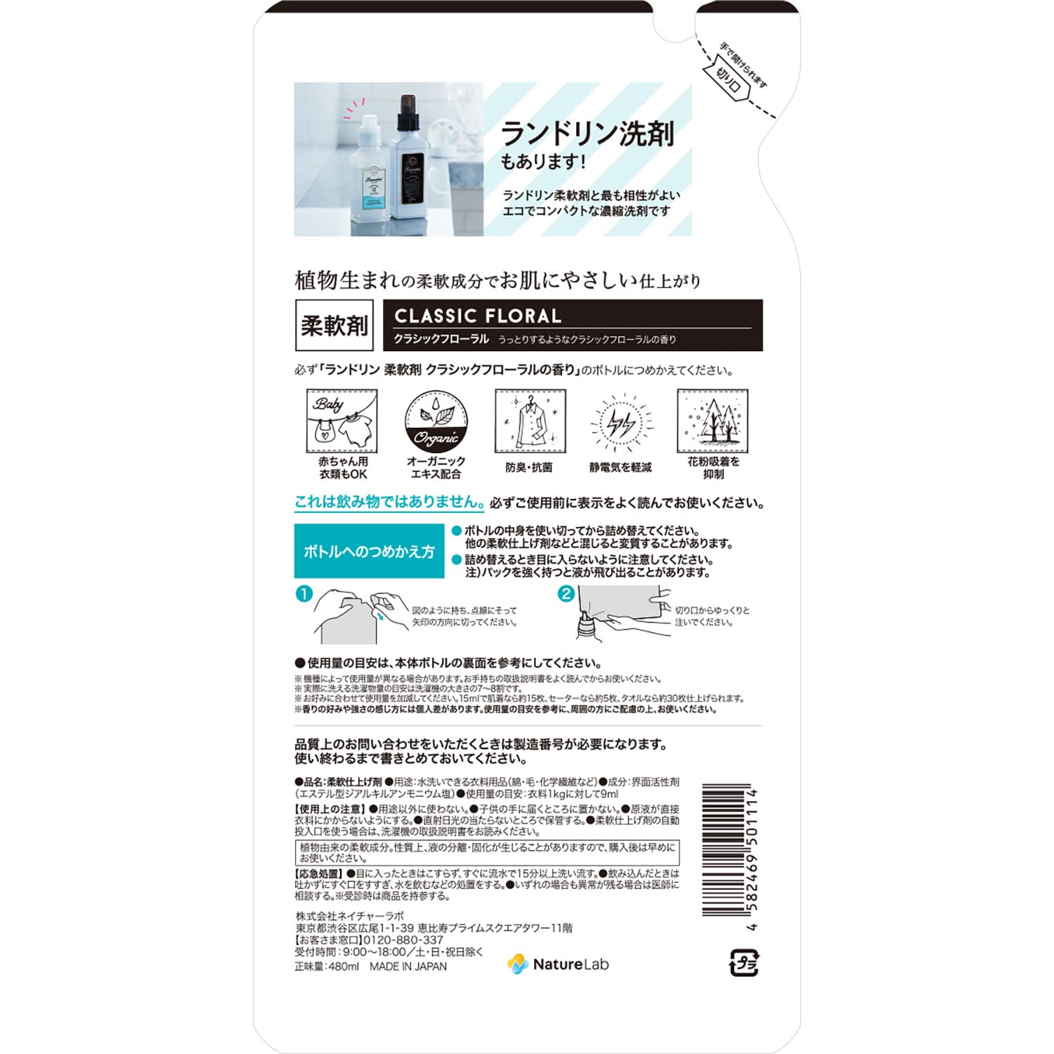 ランドリン 柔軟剤 クラシックフローラル 詰め替え 480ml