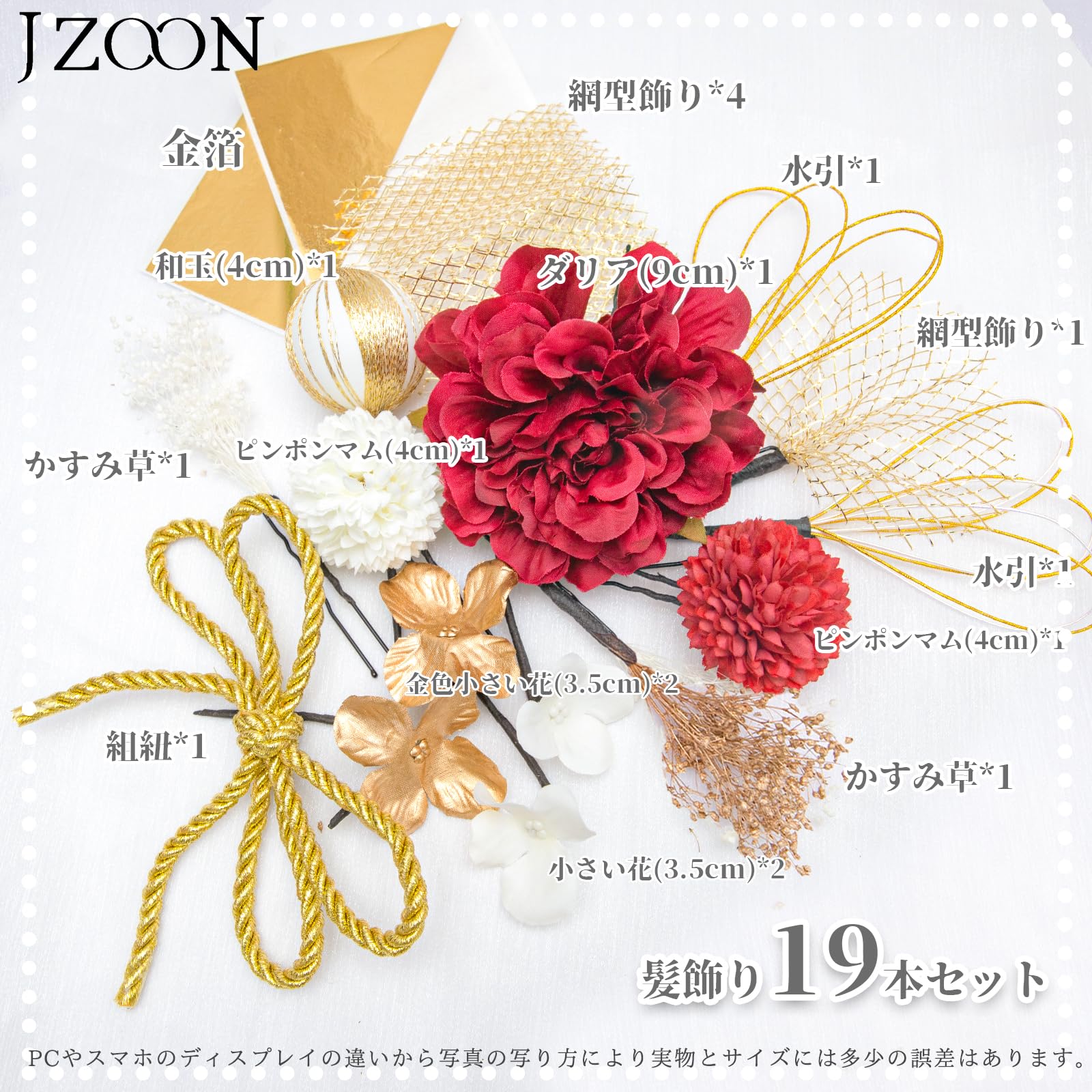[JZOON] 8色展開 ドライフラワー 髪飾り ダリア 造花飾り 和玉 赤 ヘアアクセサリー 成人式 ゴールド 水引 ヘッドパーツ あじさい 振袖 着物 卒業式 七五三 浴衣 袴 結婚式 かすみ草 和装 造花 手作り 専用ケース付き DL020