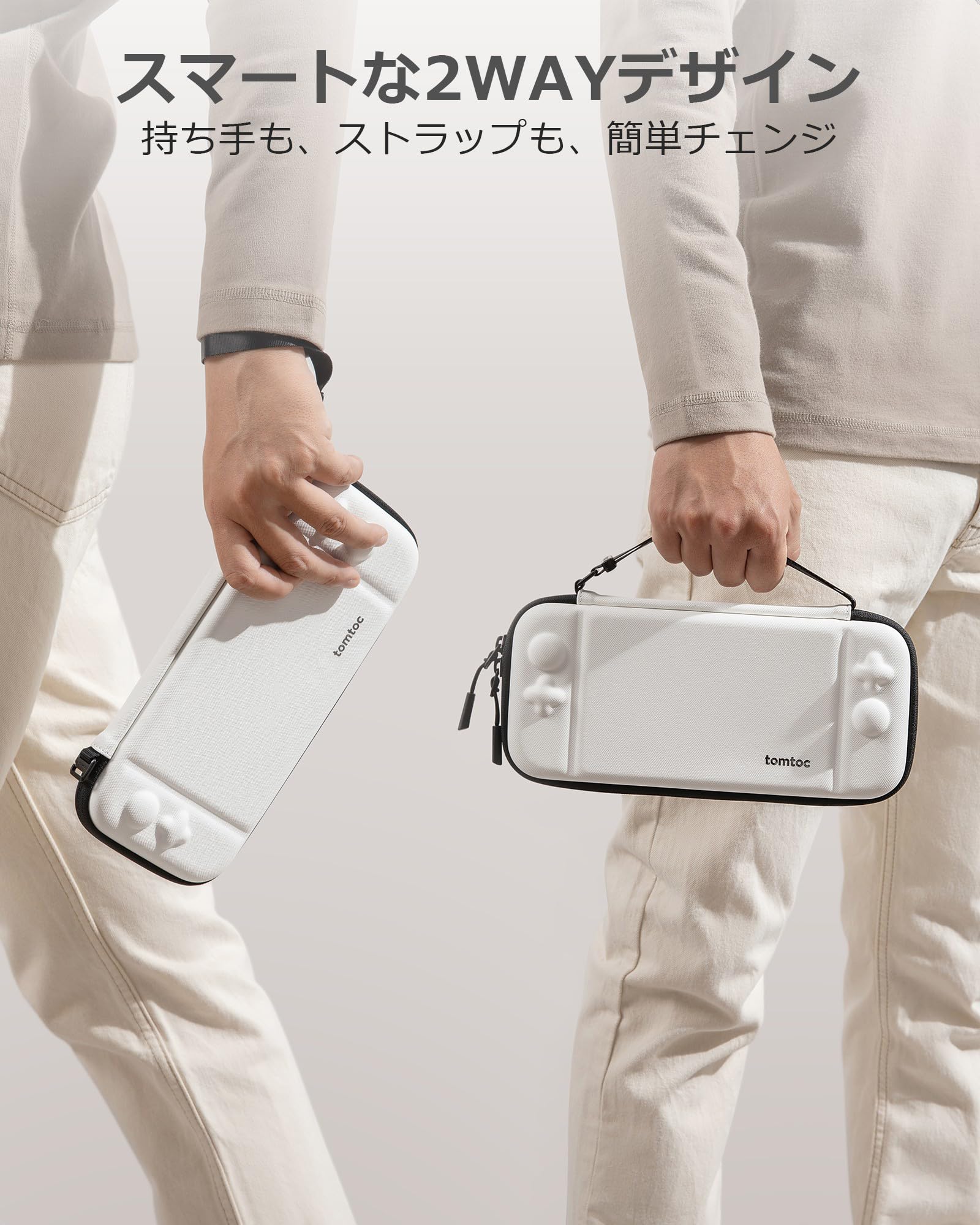Nintendo Switch対応 tomtoc ハードケース スイッチ有機ELモデル用 耐衝撃 薄型 キャリングケース 落下試験済み ゲーム 10枚収納 ジョイコン 全面保護 ホワイト