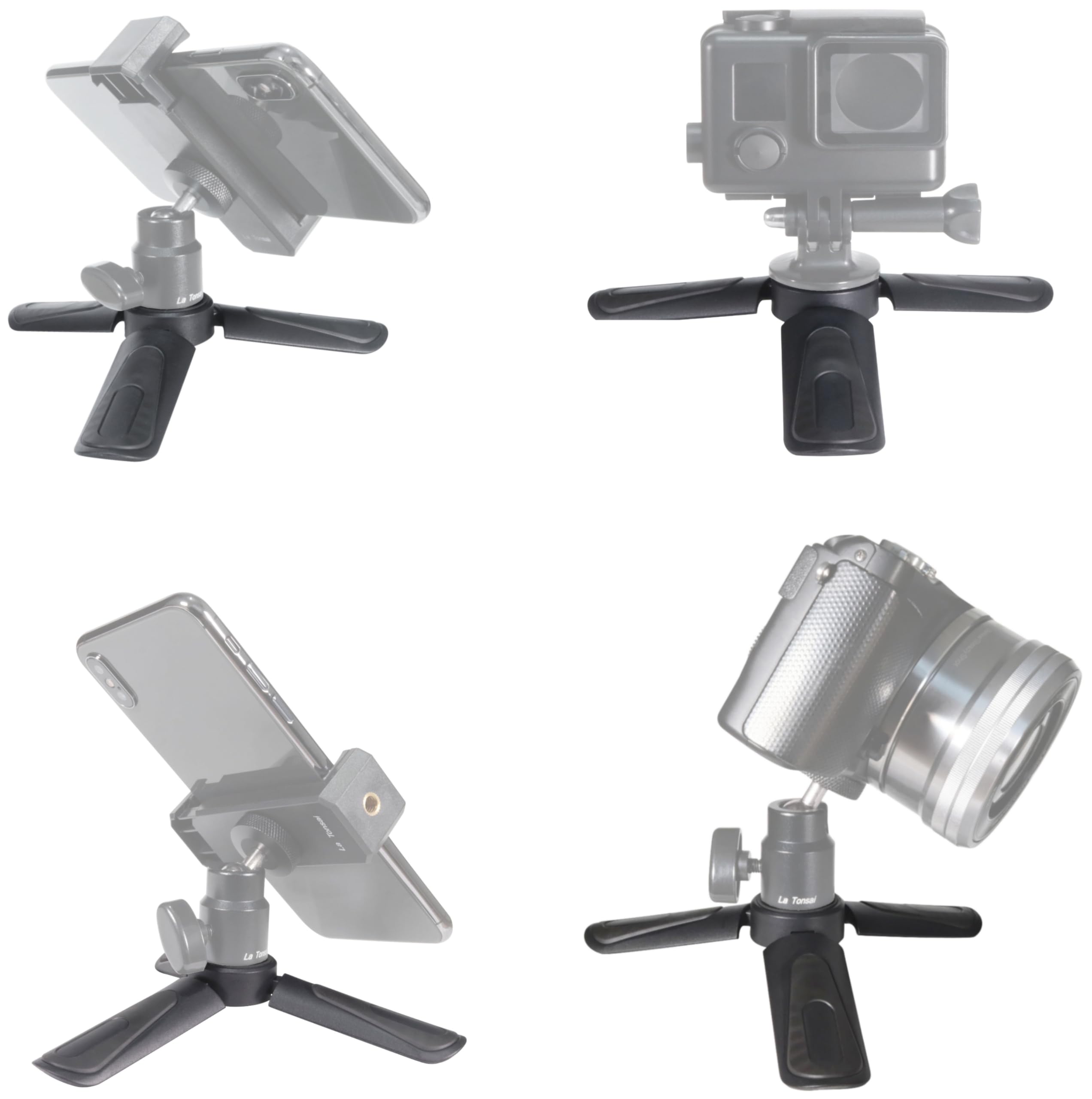 2Way ミニ 三脚 1/4インチ ねじ ローアングル 卓上 トライポッド 折りたたみ式 ポータブル テーブル スタンド 撮影グリップ - スマホ デジタルカメラ ビデオカメラ ウェアラブルカメラ等に対応 TYPE: LA-SPD (BK-PL)