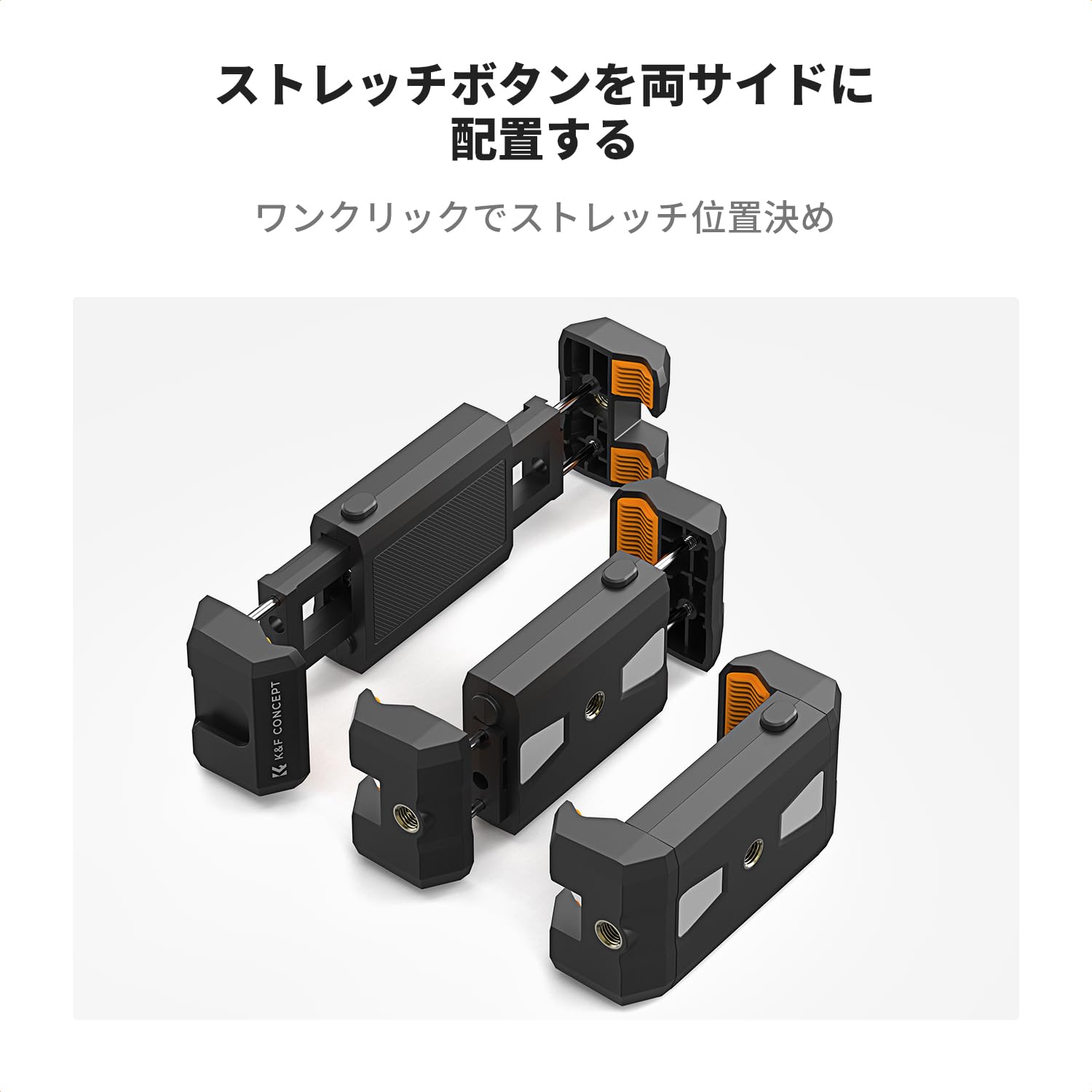 2-in-1デザイン:このホルダーは2-in-1デザインで、携帯電話とタブレットの両方に対応し、ホルダーの幅はワンプッシュとプルだけで簡単に調整できます。