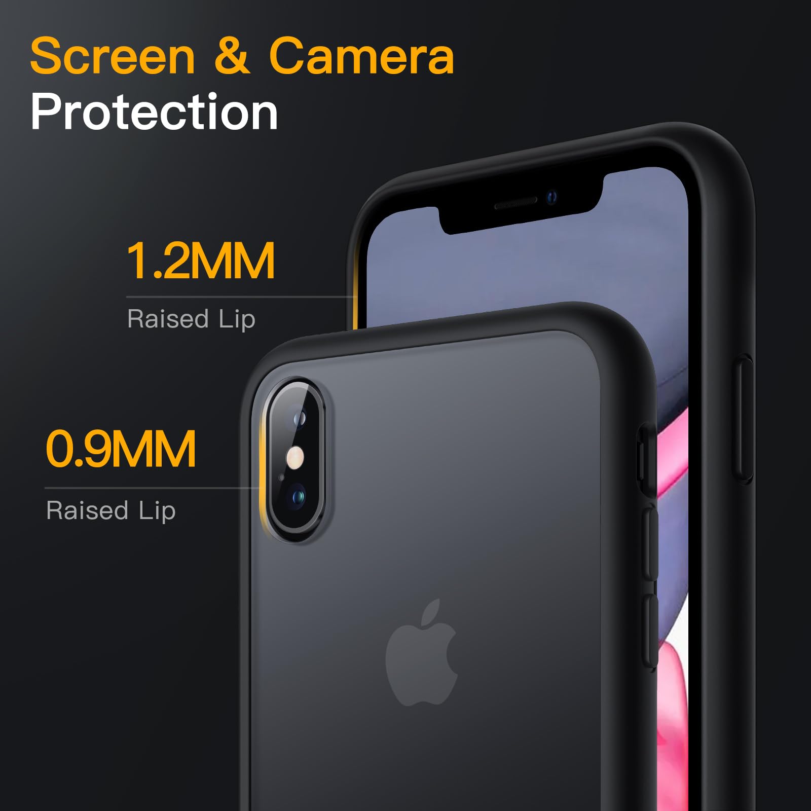 JEDirect マットケース iPhone Xs と iPhone X 5.8インチ 耐衝撃性ミリタリーグレードの落下防止 つや消しの半透明の背面電話カバー 指紋防止 (ブラック)